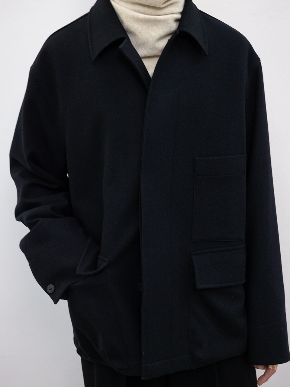 견고한 밀도감이 돋보이는 오스트레일리아산 메리노 울 원단으로 제작한 자켓입니다. 클래식한 필드 자켓 디자인을 현대적으로 재해석한 세미 오버사이즈 실루엣에 프론트 장식 스티치와 구조적인 아웃포켓으로 포인트를 주었습니다. 로고 각인된 소뿔 단추와 가죽라벨 그리고 개발한 심볼 금속 장식으로 마무리하였습니다. 46 어깨 55CM 가슴 63.5CM 총장 73.8CM 밑단 64CM 소매 63CM 소매부리 15.5CM 48 어깨 57CM 가슴 66CM 총장 75CM 밑단 66.5CM 소매 64CM 소매부리 16CM 50 어깨 59CM 가슴 68.5CM 총장 76.2CM 밑단 69CM 소매 65CM 소매부리 16.5CM 치수는 재는 위치에 따라 1-3cm 차이 생길 수 있습니다. 어두운 원단은 염색되었기 때문에 밝은 아이템과 착용 시 주의 부탁드립니다. DRY CLEAN ONLY 181cm 마른체형 모델 48 SIZE 착용