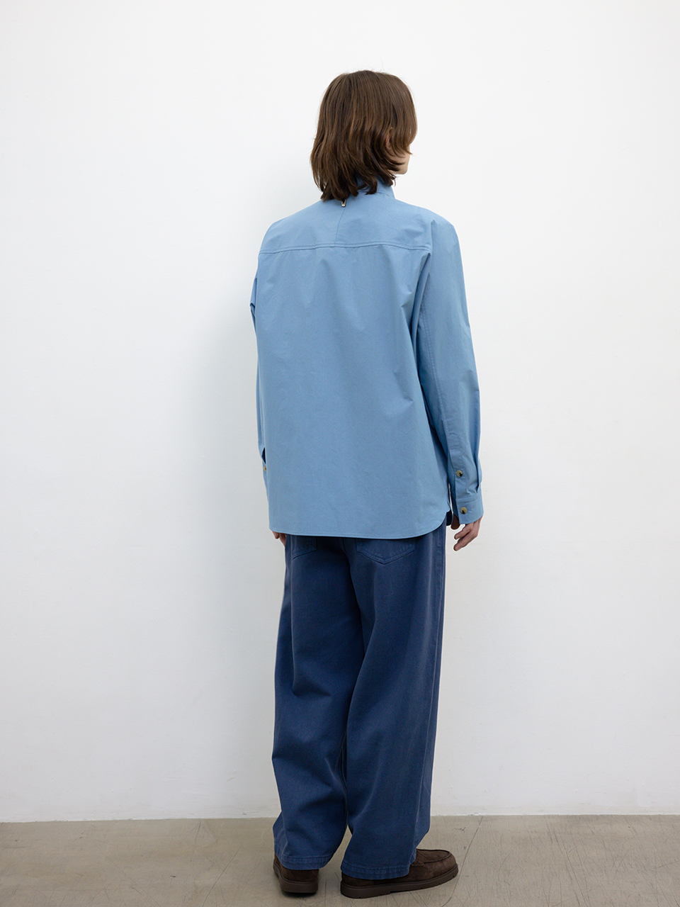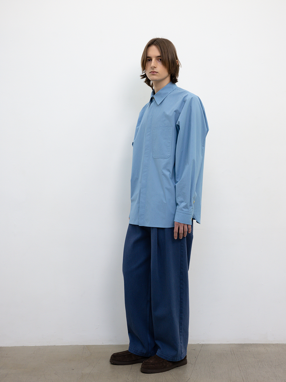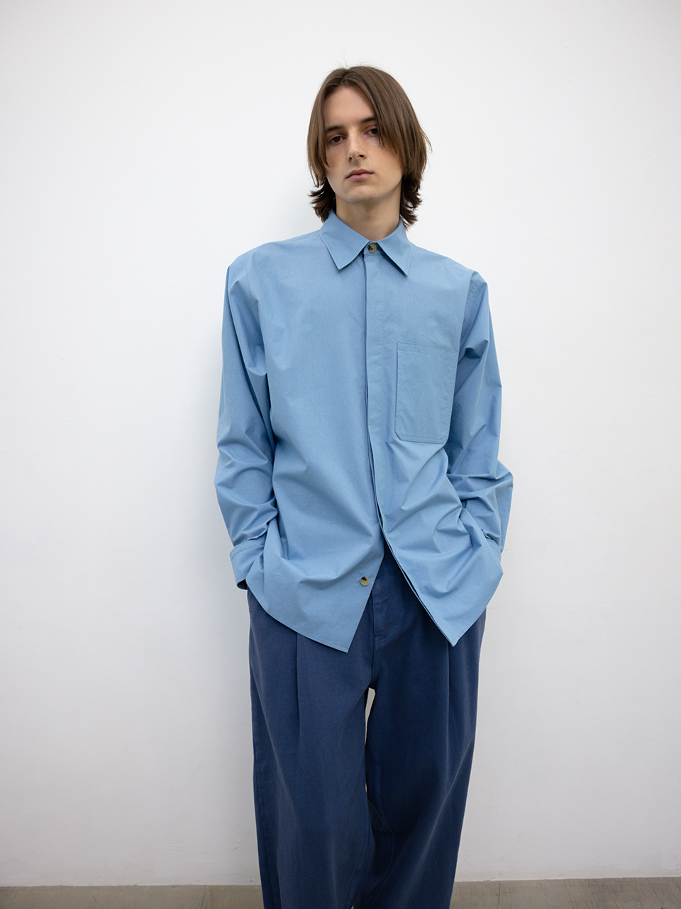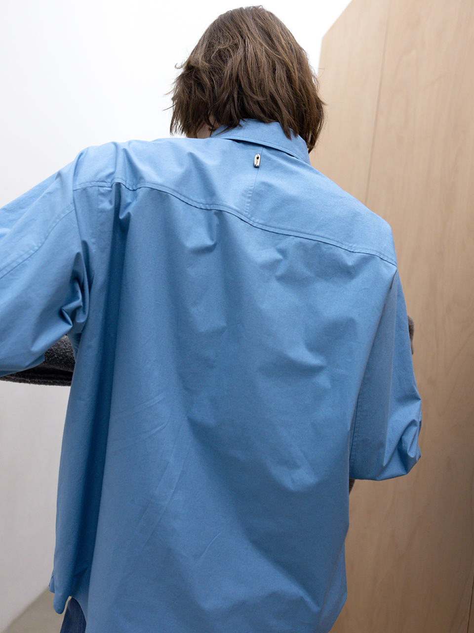 부드럽고 견고한 40수 고밀도 코튼 원단으로 제작한 셔츠입니다. 오버사이즈의 드레스 셔츠 디자인으로 전면은 셋 인 슬리브, 후면은 돌먼 슬리브로 구성된 입체적인 패턴을 적용해 풍성한 실루엣과 더불어 편안한 착용감을 구현했습니다. 프론트 이중으로 사용 가능한 주머니로 포인트를 주었습니다. 로고 각인된 지속가능한 카제인 단추와 개발한 심볼 로고 금속 장식으로 마무리하였습니다. 46 가슴 64.5CM 총장 76.5CM 밑단 60.5CM 소매 90CM 소매부리 11.5CM 48 가슴 67CM 총장 77.5CM 밑단 63CM 소매 92CM 소매부리 12CM 50 가슴 69.5CM 총장 78.5CM 밑단 65.5CM 소매 94CM 소매부리 12.5CM 치수는 재는 위치에 따라 1-3cm 차이 생길 수 있습니다. 어두운 원단은 염색되었기 때문에 밝은 아이템과 착용 시 주의 부탁드립니다. DRY CLEAN ONLY 181cm 마른체형 모델 48 SIZE 착용