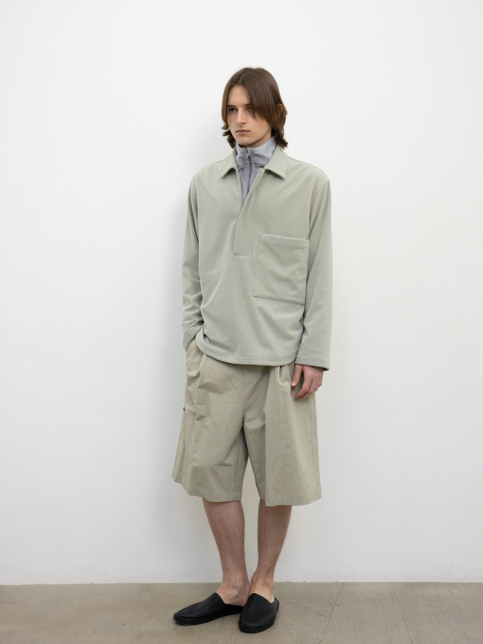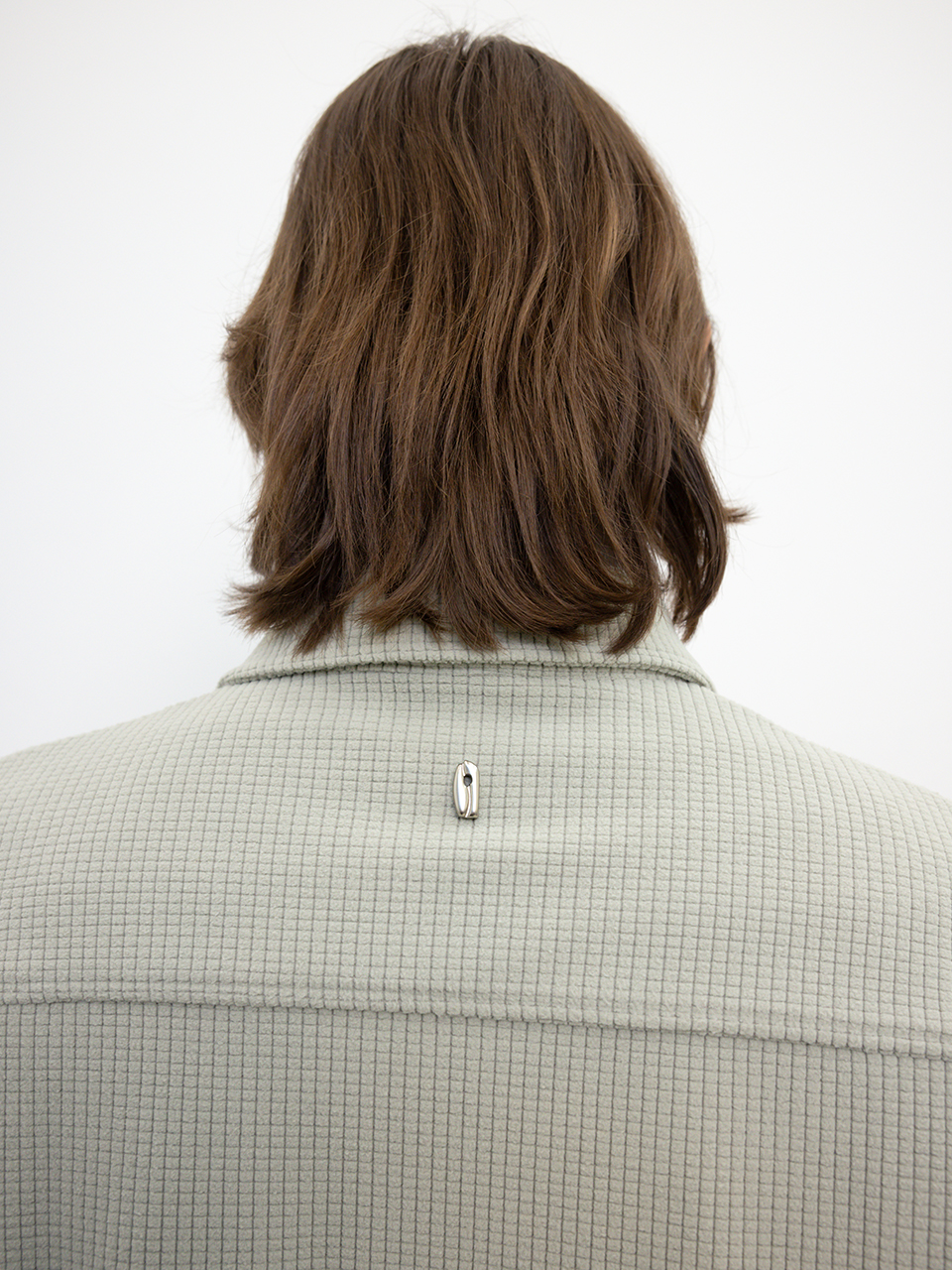 와플 조직이 돋보이는 플리스 원단으로 제작한 아노락 셔츠입니다. 오버사이즈 핏의 풀오버 스타일로, 프론트에는 히든 하프 집업 디테일을 더해 미니멀하면서도 편안한 착용감을 제공합니다. 전면 아웃포켓으로 실용성을 높였으며, 개발한 심볼 로고 슬라이더와 심볼 로고 금속 장식으로 마무리 하였습니다. 46 어깨 53CM 가슴 62.5CM 총장 72.5CM 밑단 59.5CM 소매 61CM 소매부리 15CM 48 어깨 55CM 가슴 65CM 총장 73.5CM 밑단 62CM 소매 62CM 소매부리 15.5CM 50 어깨 57CM 가슴 67.5CM 총장 74.5CM 밑단 64.5CM 소매 63CM 소매부리 16CM 치수는 재는 위치에 따라 1-3cm 차이 생길 수 있습니다. 어두운 원단은 염색되었기 때문에 밝은 아이템과 착용 시 주의 부탁드립니다. DRY CLEAN ONLY 181cm 마른체형 모델 48 SIZE 착용