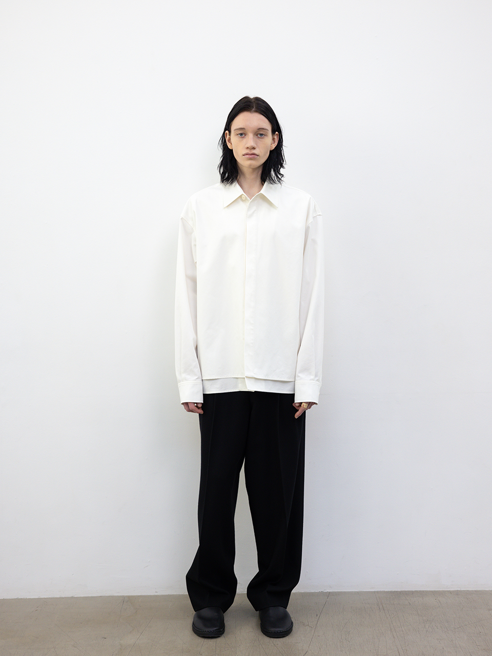 탄탄한 조직감 코튼 블랜드 원단으로 제작한 레이어드 셔츠입니다. 넉넉한 사이즈의 셔츠에 프론트 더블 레이어드 디테일로 유니크함을 더한 시그니처 아이템입니다. 로고 각인된 지속가능한 카제인 단추와 개발한 심볼 금속 장식으로 마무리하였습니다. 46 어깨 56CM 가슴 60.5CM 총장 73CM 밑단 60.5CM 소매 61CM 소매부리 11.5CM 48 어깨 58CM 가슴 63CM 총장 74CM 밑단 63CM 소매 62CM 소매부리 12CM 50 어깨 60CM 가슴 65.5CM 총장 75CM 밑단 65.5CM 소매 63CM 소매부리 12.5CM 치수는 재는 위치에 따라 1-3cm 차이 생길 수 있습니다. 어두운 원단은 염색되었기 때문에 밝은 아이템과 착용 시 주의 부탁드립니다. DRY CLEAN ONLY 181cm 마른체형 모델 48 SIZE 착용