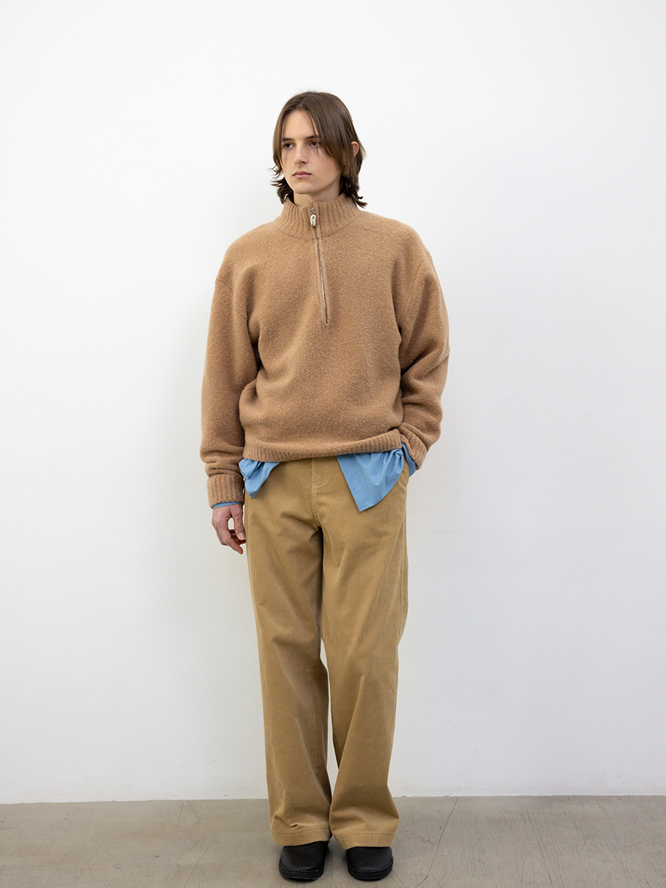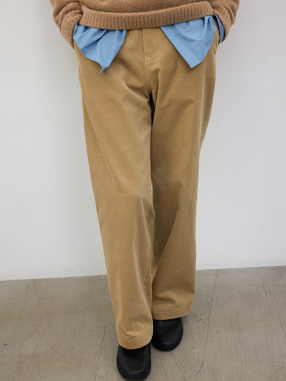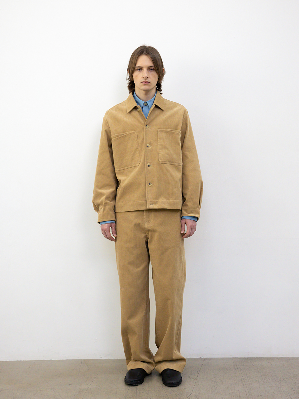 밀도 높은 코튼 코듀로이 소재로 제작한 팬츠입니다. 세미 와이드 스트레이트 핏으로 캐주얼한 연출이 가능하며, 허릿단 안쪽 로고 테이프와 앞 주머니에서 연결되는 비죠 디테일로 포인트를 주었습니다. 로고 각인된 지속가능한 카제인 단추로 마무리했습니다. 46 허리 40CM 엉덩이 52.5CM 허벅지 33.5CM 무릎 27.8CM 밑단 25.5CM 총장 107CM 앞밑위 35CM 뒷밑위43.5CM 48 허리 42.5CM 엉덩이 55CM 허벅지 35CM 무릎 29CM 밑단 26.5CM 총장 108CM 앞밑위 36CM 뒷밑위 44.5CM 50 허리 45CM 엉덩이 57.5CM 허벅지 36.5CM 무릎 30.2CM 밑단 27.5CM 총장 109CM 앞밑위 37CM 뒷밑위 45.5CM 치수는 재는 위치에 따라 1-3cm 차이 생길 수 있습니다. 어두운 원단은 염색되었기 때문에 밝은 아이템과 착용 시 주의 부탁드립니다. DRY CLEAN ONLY 181cm 마른체형 모델 48 SIZE 착용