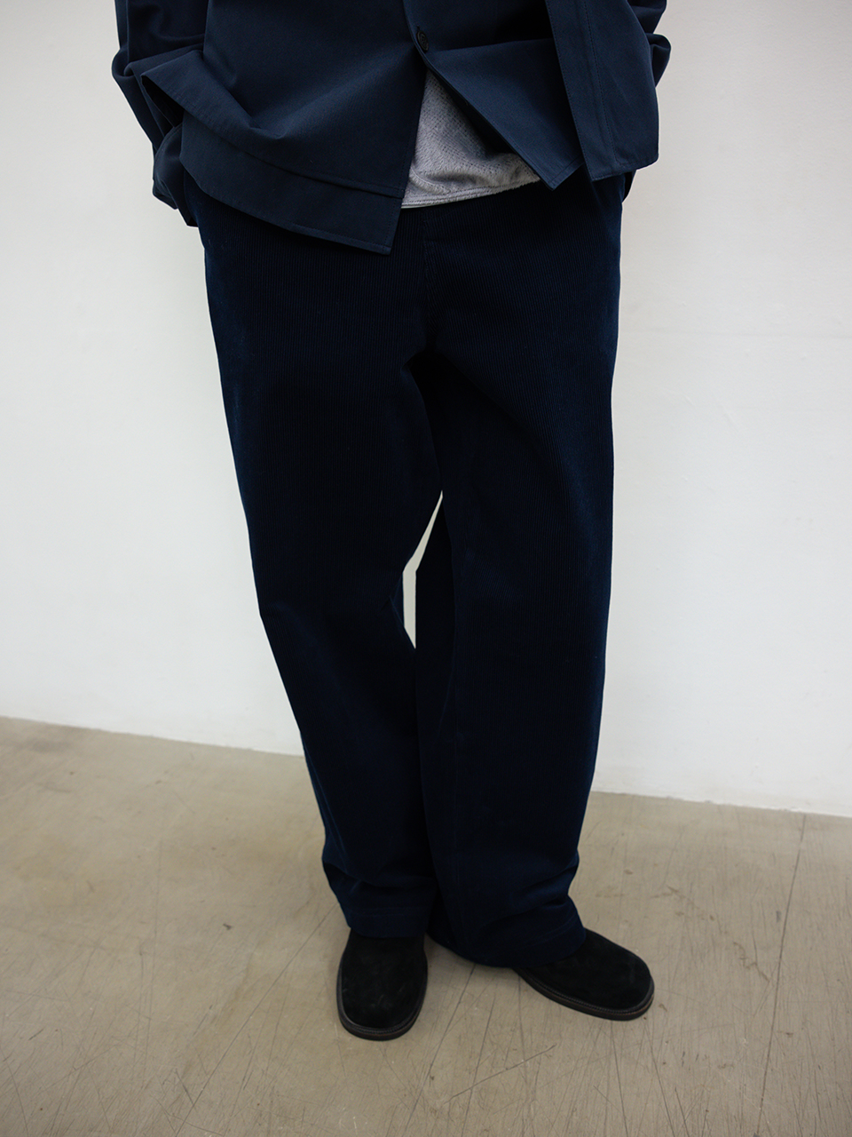 밀도 높은 코튼 코듀로이 소재로 제작한 팬츠입니다. 세미 와이드 스트레이트 핏으로 캐주얼한 연출이 가능하며, 허릿단 안쪽 로고 테이프와 앞 주머니에서 연결되는 비죠 디테일로 포인트를 주었습니다. 로고 각인된 지속가능한 카제인 단추로 마무리했습니다. 46 허리 40CM 엉덩이 52.5CM 허벅지 33.5CM 무릎 27.8CM 밑단 25.5CM 총장 107CM 앞밑위 35CM 뒷밑위43.5CM 48 허리 42.5CM 엉덩이 55CM 허벅지 35CM 무릎 29CM 밑단 26.5CM 총장 108CM 앞밑위 36CM 뒷밑위 44.5CM 50 허리 45CM 엉덩이 57.5CM 허벅지 36.5CM 무릎 30.2CM 밑단 27.5CM 총장 109CM 앞밑위 37CM 뒷밑위 45.5CM 치수는 재는 위치에 따라 1-3cm 차이 생길 수 있습니다. 어두운 원단은 염색되었기 때문에 밝은 아이템과 착용 시 주의 부탁드립니다. DRY CLEAN ONLY 181cm 마른체형 모델 48 SIZE 착용