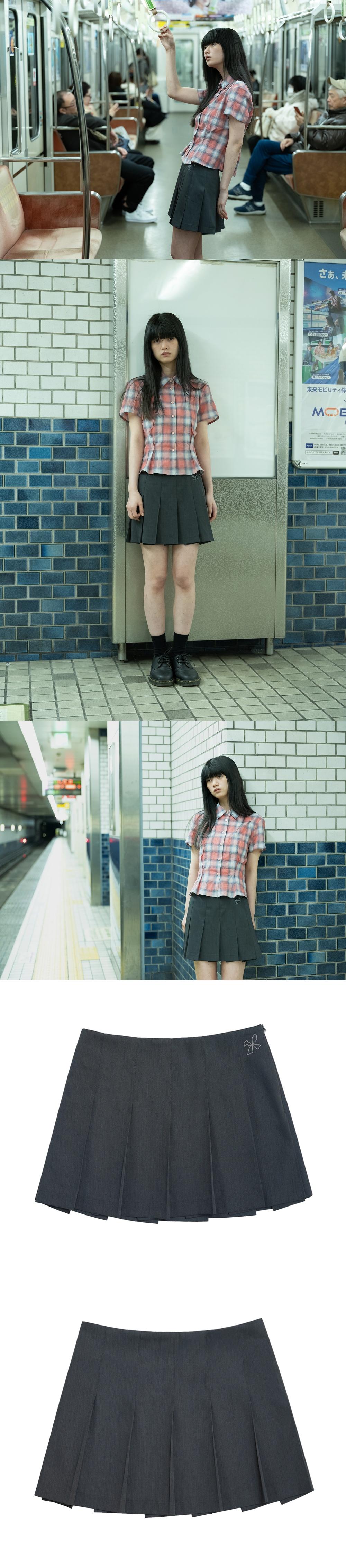 - 외주름 - 자수 디테일 polyester: 70 rayon: 30 Size(cm)단면 Length/ Waist/ Hip 1: 32.5/ 34/ 46 2: 32.5/ 36/ 48 model: 164cm 1 size