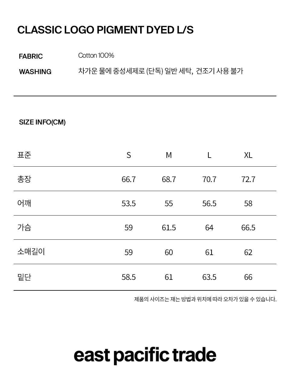 이피티 클래식 로고 피그먼트 다이 롱 슬리브 네이비