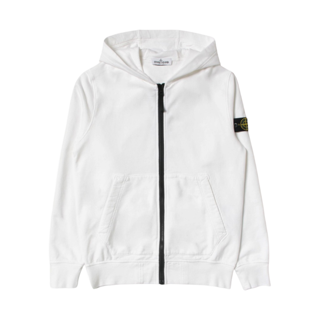 (Kids) Stone Island Cotton Fleece Full Zip Hooded Sweatshirt White - 22SS