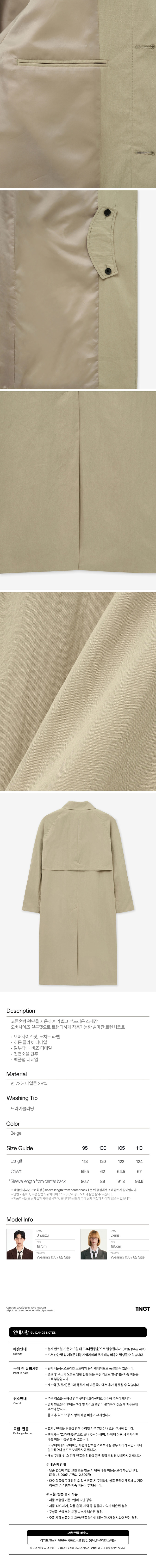 티엔지티 발마카안 오버사이즈 트렌치 코트 베이지