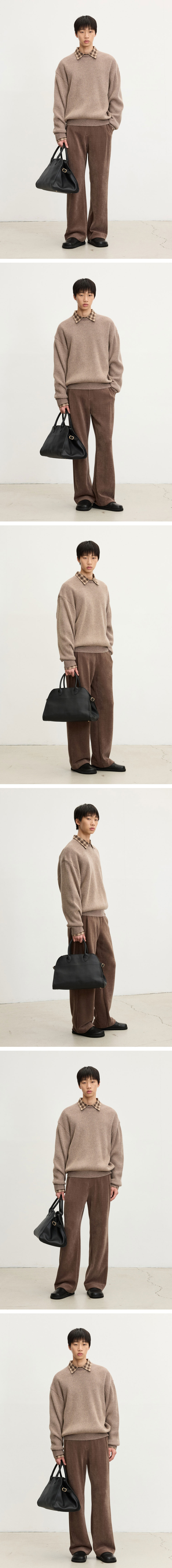 티엔지티 벨벳 니트 와이드핏 밴딩 팬츠 토프 베이지