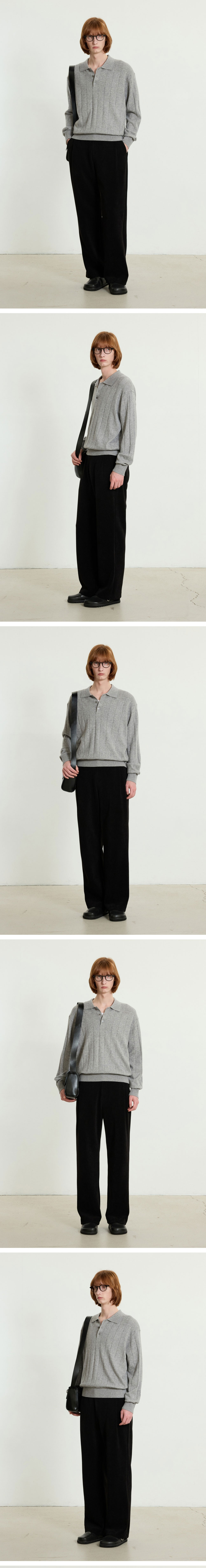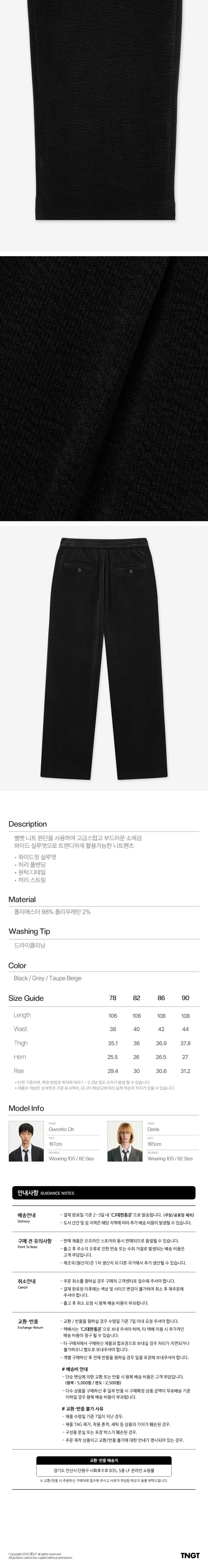 티엔지티 벨벳 니트 와이드핏 밴딩 팬츠 블랙