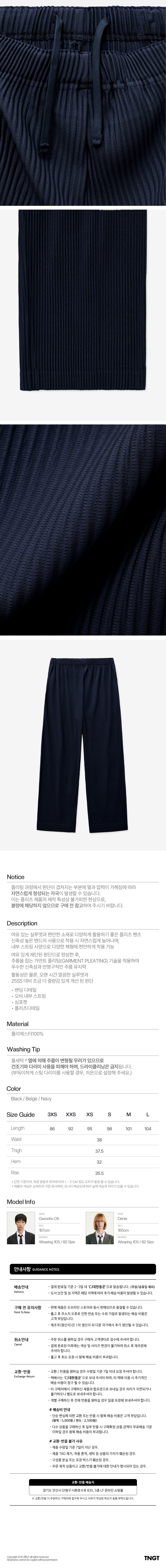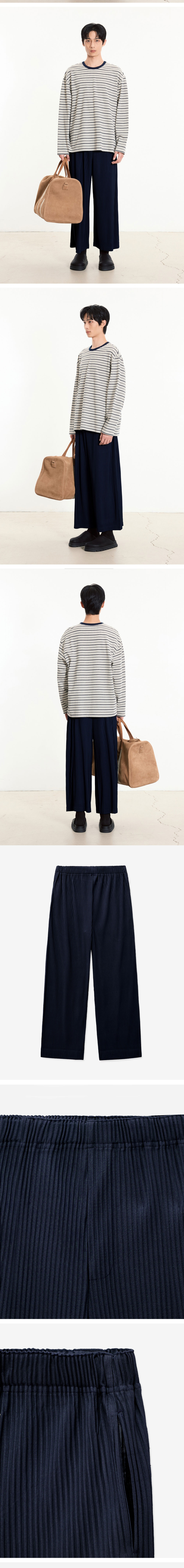 티엔지티 요요기 플리츠 와이드핏 팬츠 네이비