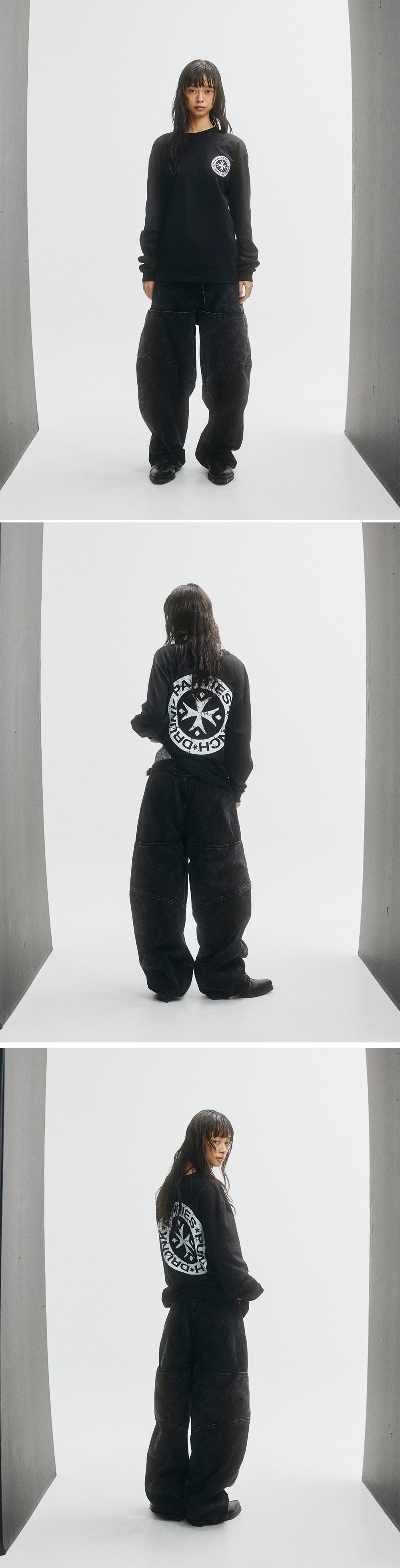 펀치 드렁크 파티즈 허트 로고 롱 슬리브 블랙