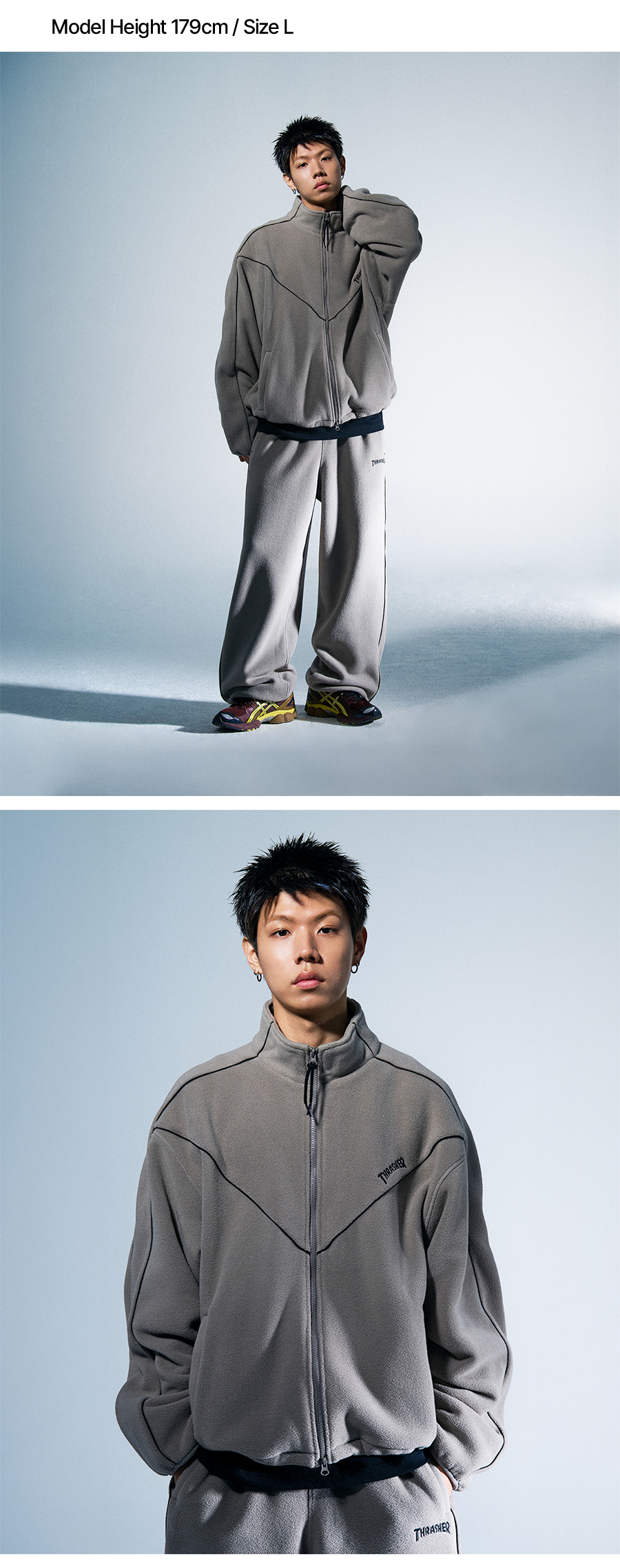 트레셔 매거진 플리스 트랙 하이넥 집업 그레이지