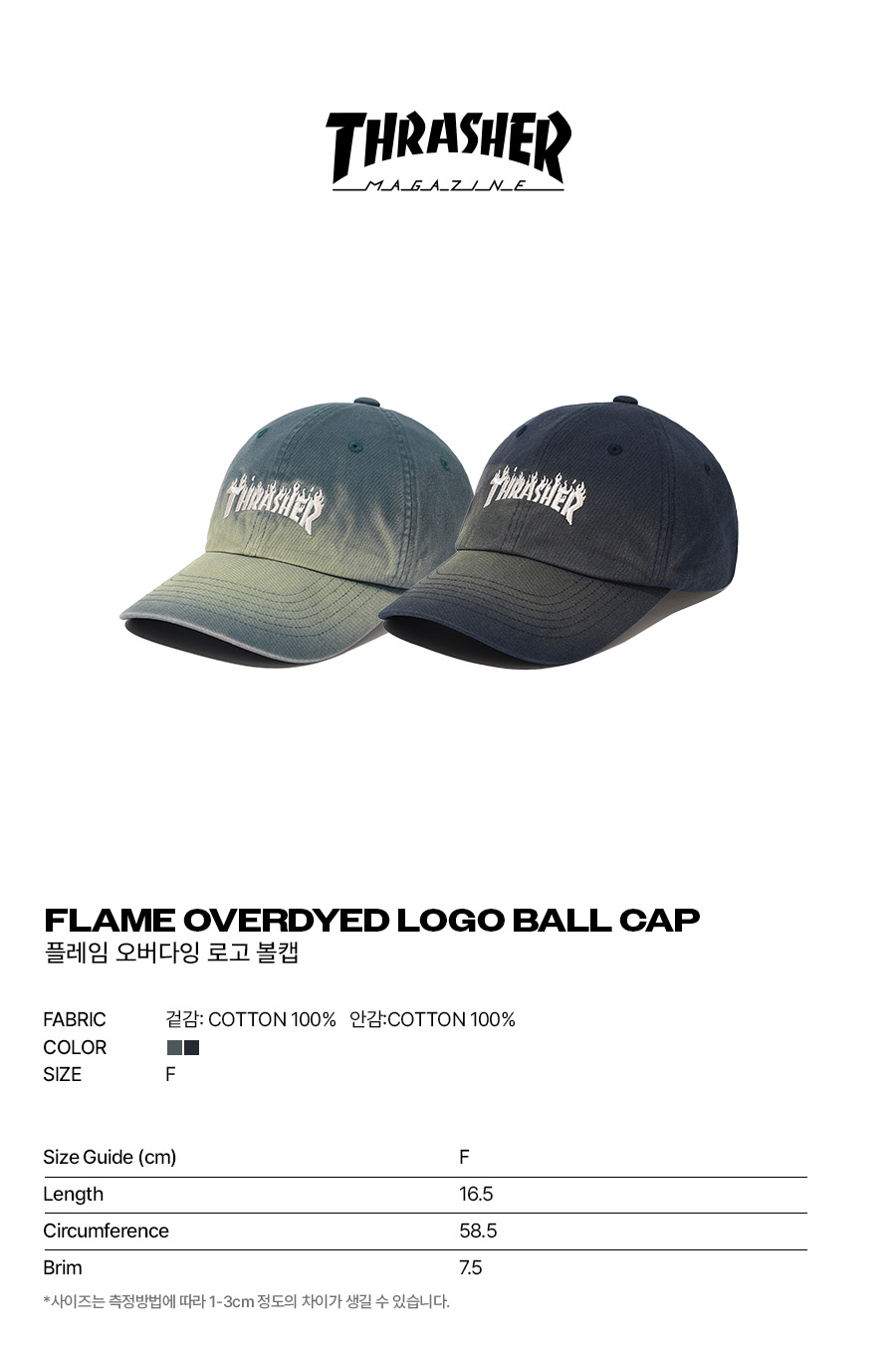 트레셔 플레임 오버다잉 로고 볼캡 다크 파인