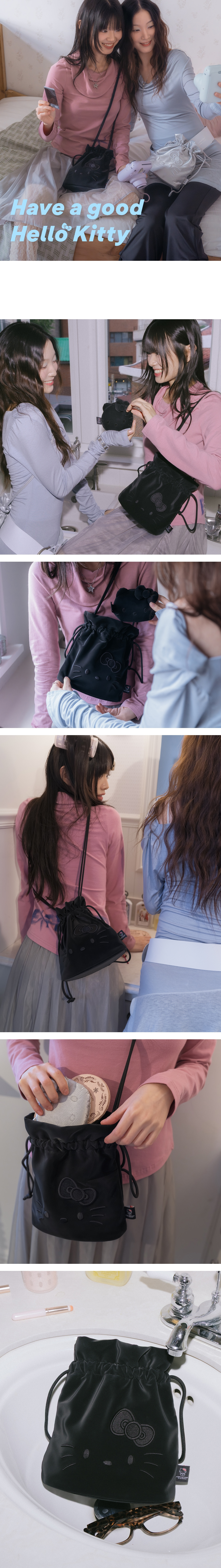 조셈앤스테이시 드로우스트링 크로스 헬로키티 헤이즈 블랙
