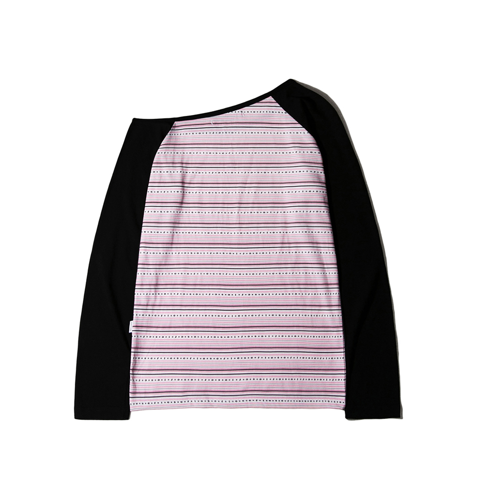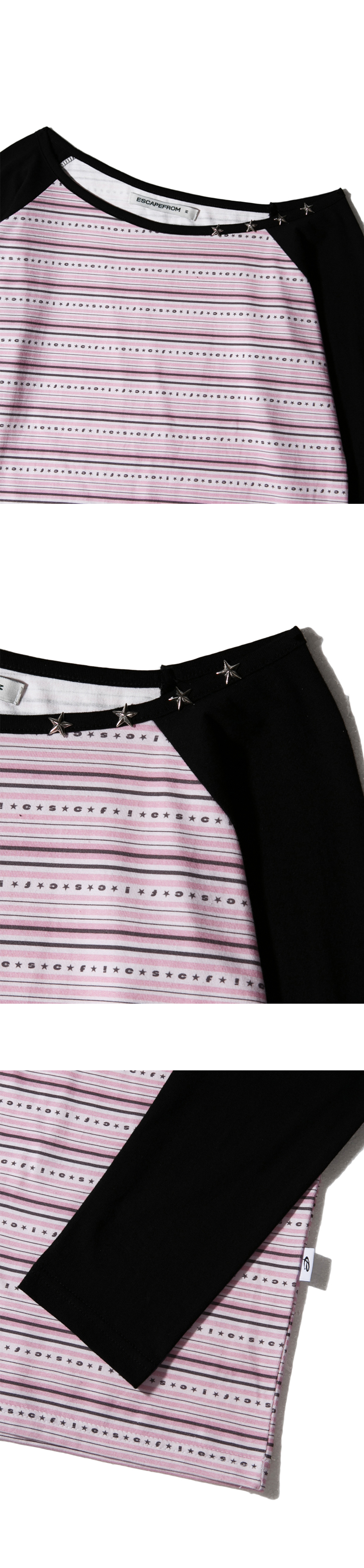 이스케이프프롬 핑크 스타 로고 스트라이프 풀프린트 별 리벳 포인트 원숄더 롱슬리브 블랙