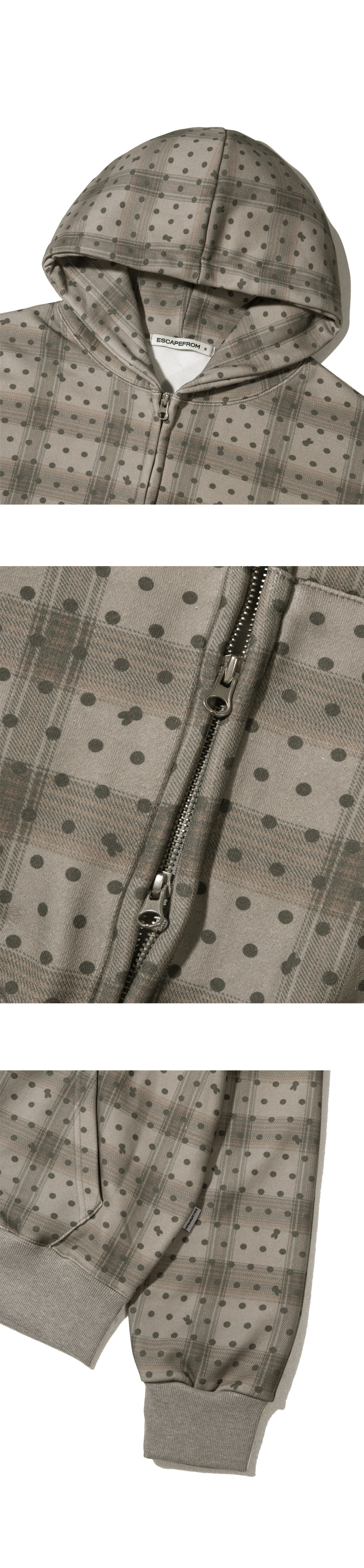 이스케이프프롬 브라운 체크 토끼땡 풀프린트 투웨이 후드집업