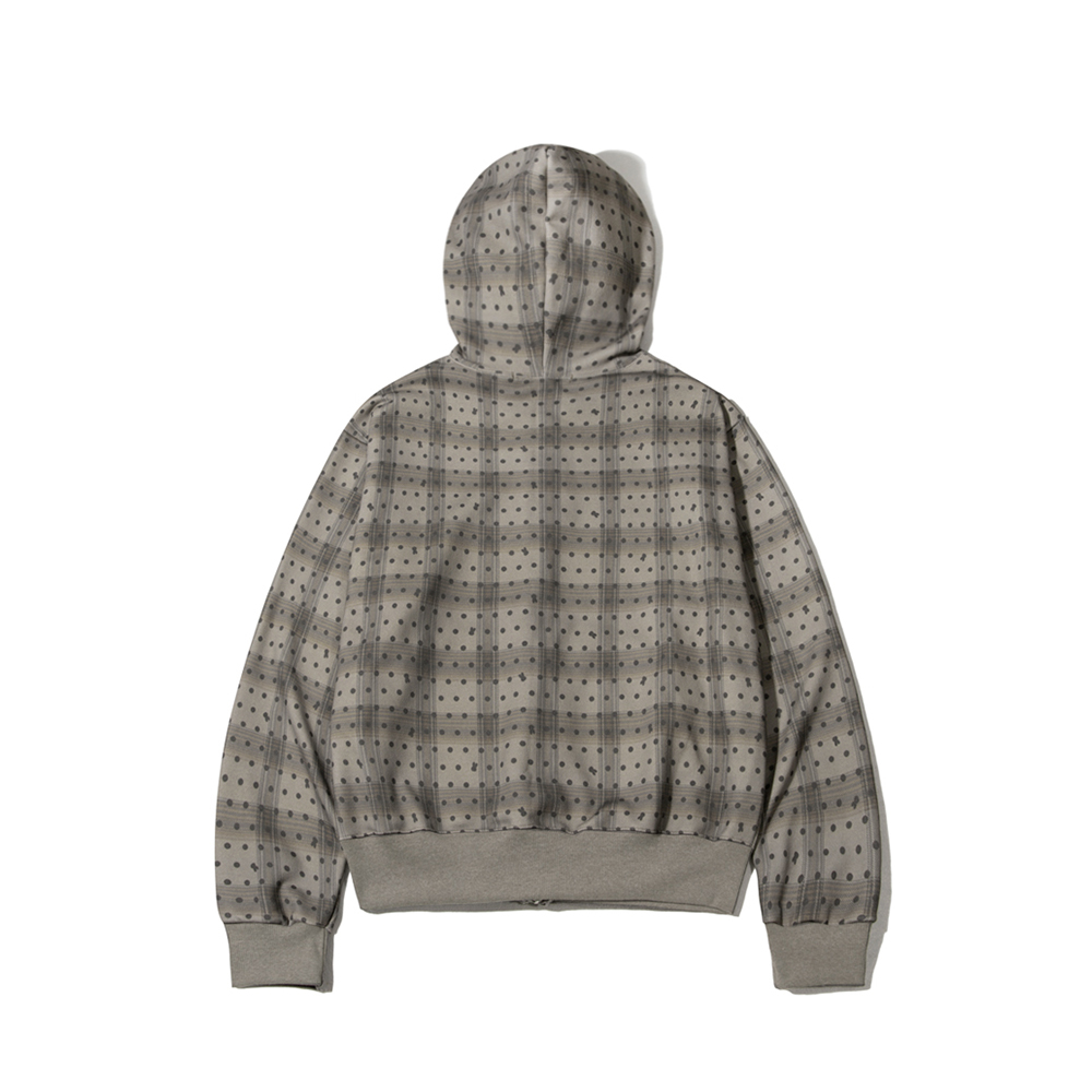 Escapefrom Brown Check Bunny Dots Full Print Two-Way Hoodie Zip-Up