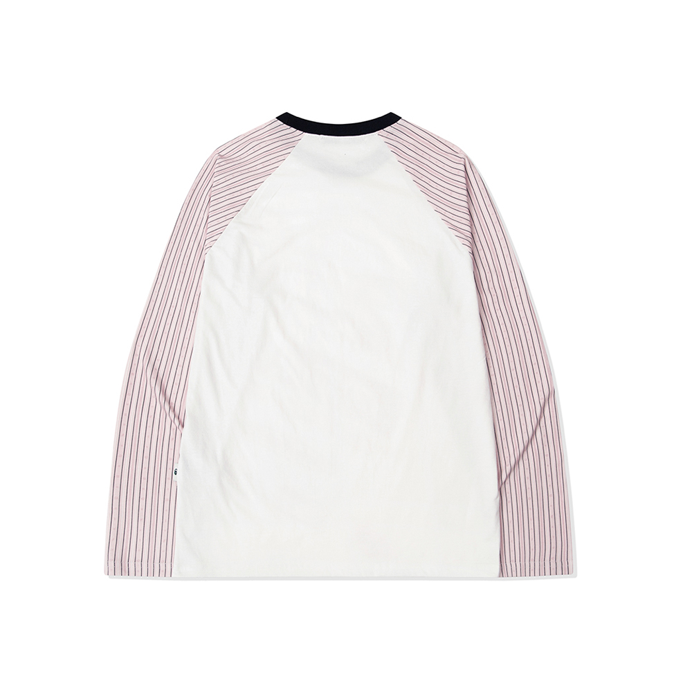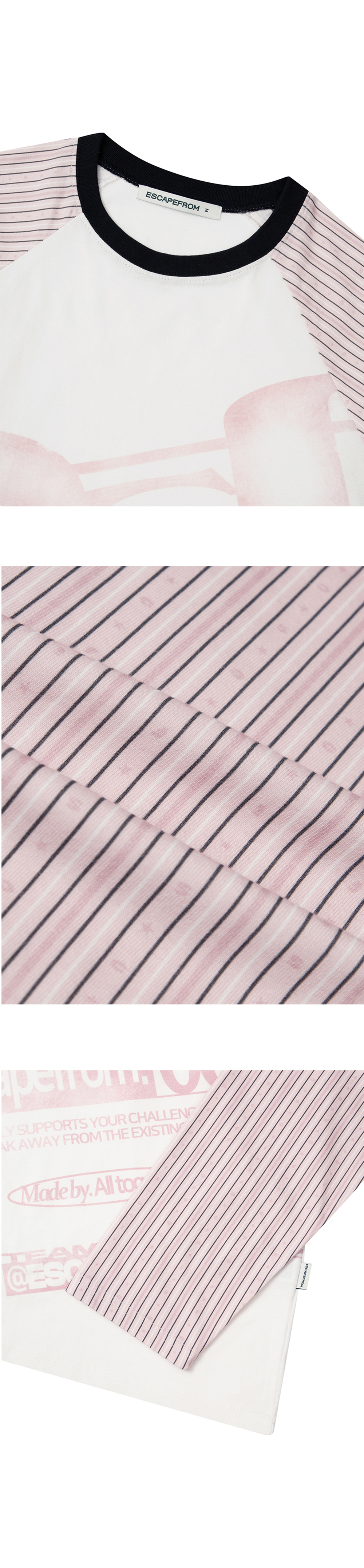 이스케이프프롬 스트라이프 틸티드 ESCF 로고 콜라주 롱슬리브 라이트핑크