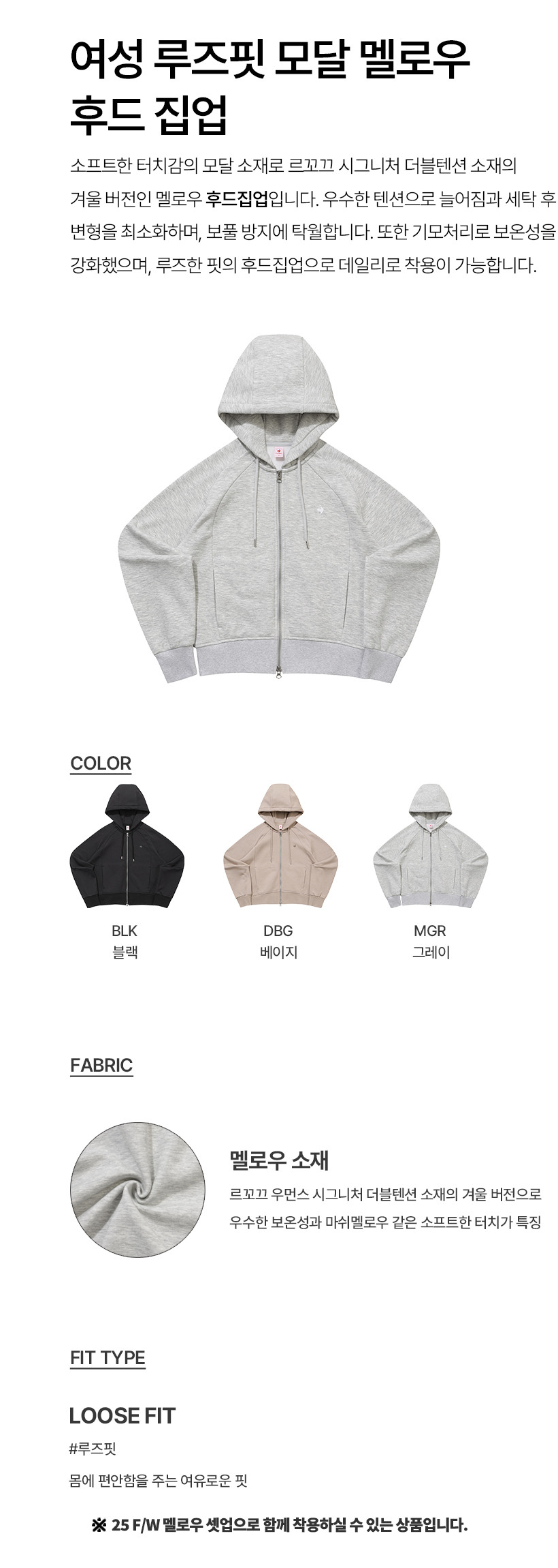 르꼬끄 스포르티브 여성 루즈핏 모달 멜로우 후드 집업 - 블랙(QQ422OFTO1)