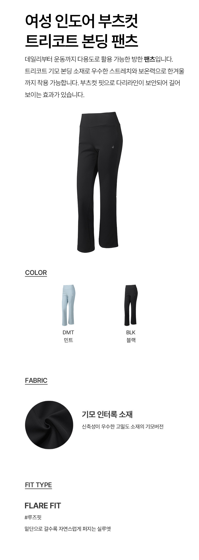 르꼬끄 스포르티브 여성 인도어 부츠컷 트리코트 본딩 팬츠 - 블랙(QQ412OPFO1)