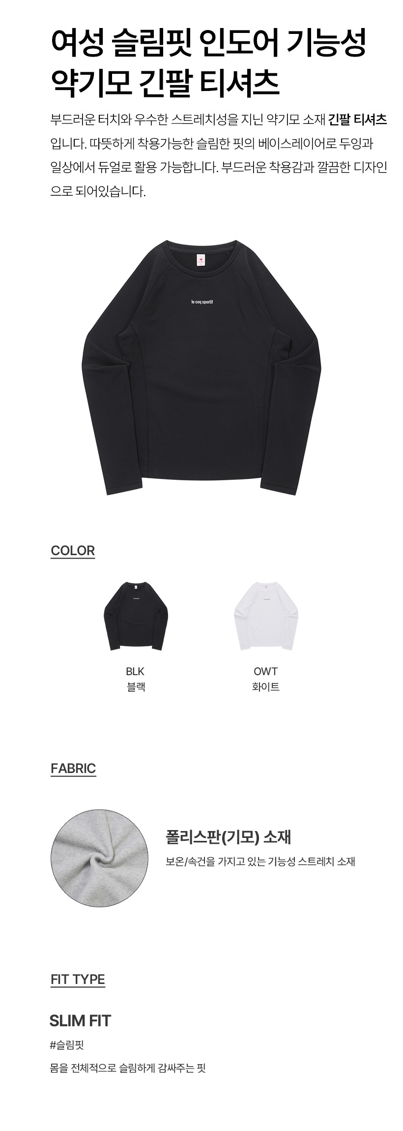 르꼬끄 스포르티브 여성 슬림핏 인도어 기능성 약기모 긴팔 티셔츠 - 블랙(QQ412ORLO1)