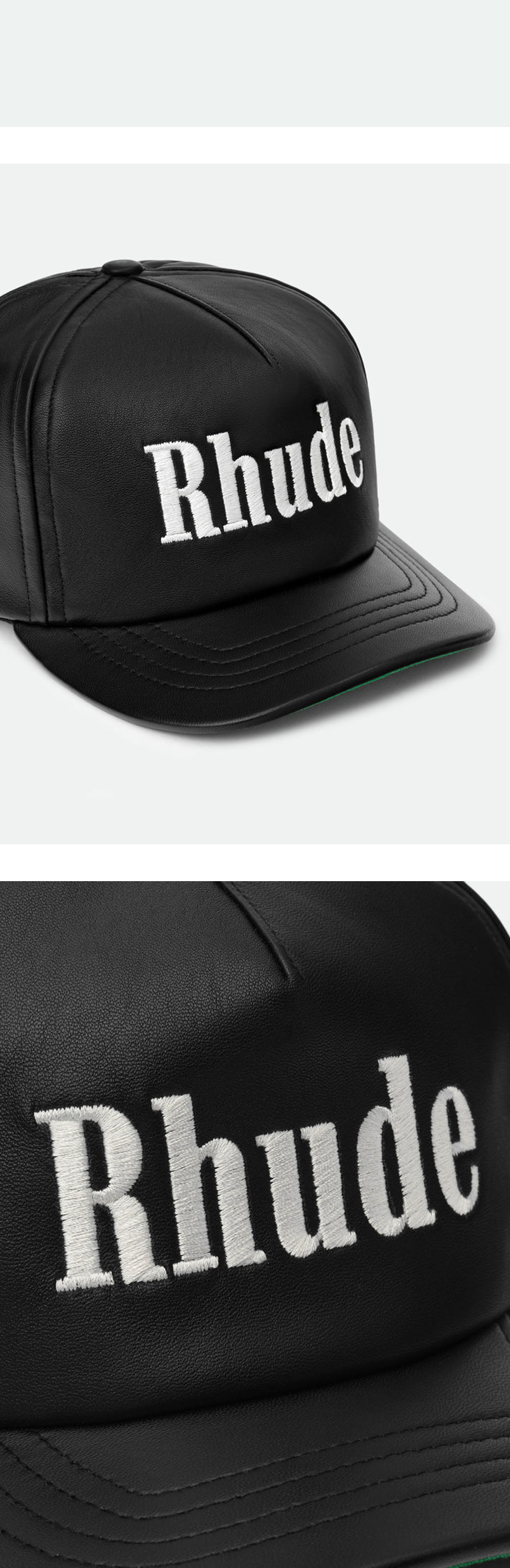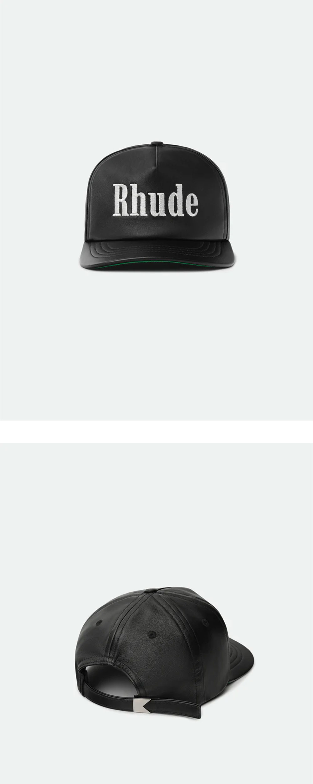시크하면서도 고급스러운 무드를 담은 루드 로고 레더 햇 블랙입니다. - 헤비웨이트 가죽 캡 - 전면 클래식 Rhude 로고 자수 디테일 - 뒷면 스냅 스트랩으로 사이즈 조절 가능 - 그린 언더 브림 디테일 - 소재: 100% 램 가죽