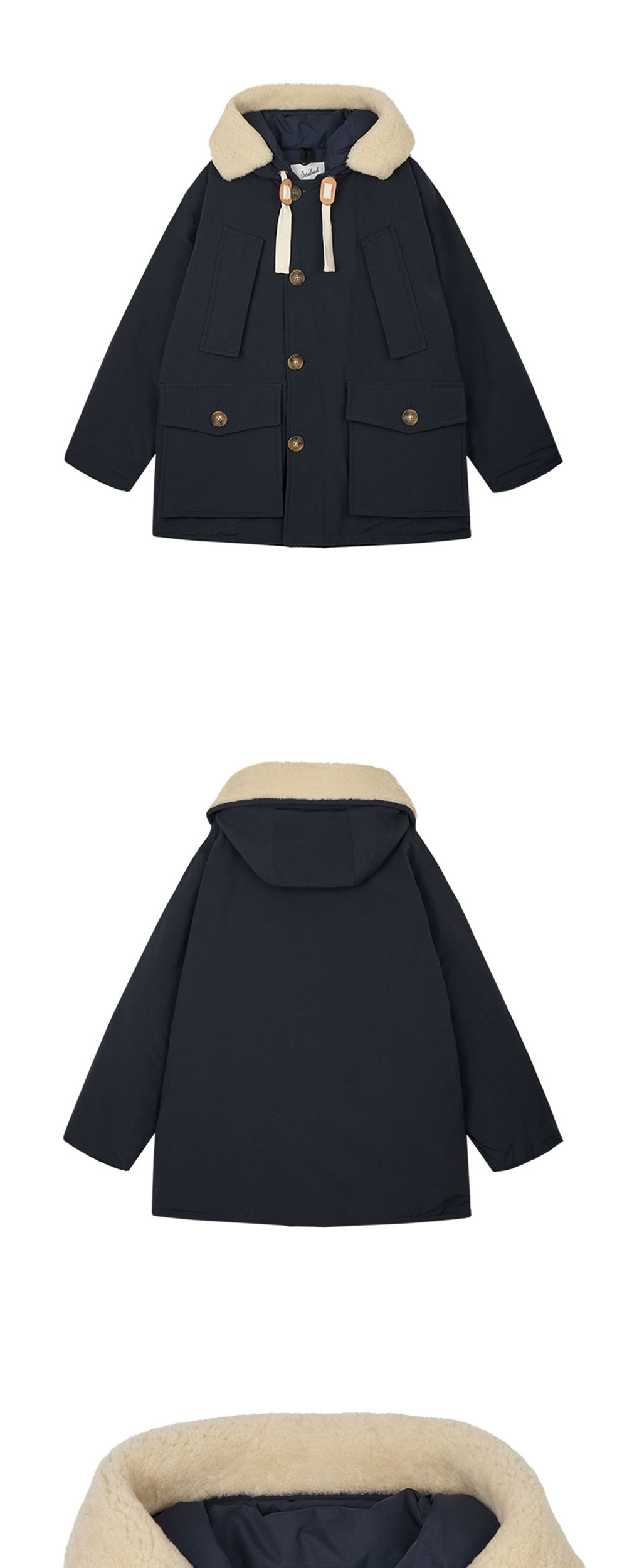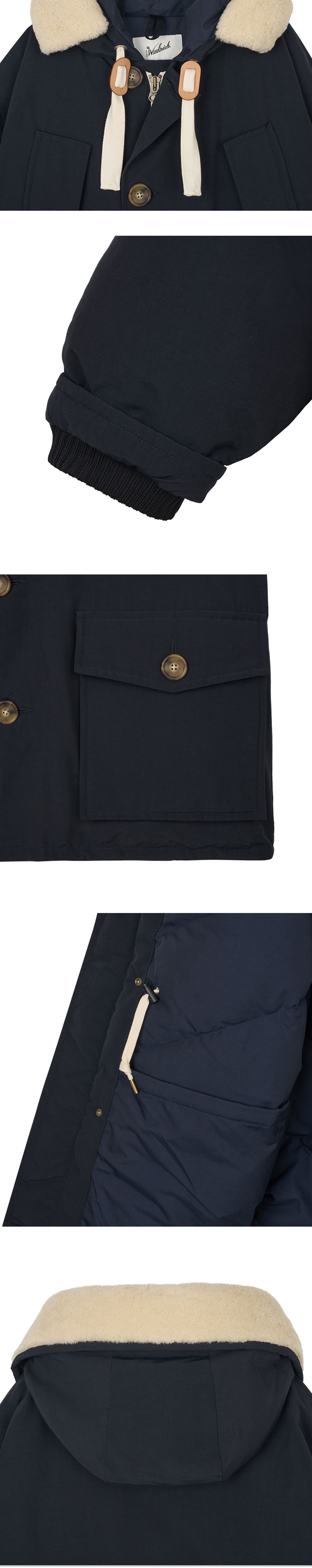 울리치 아틱 클래식 핏 파카 네이비입니다. - 여유있는 오버핏 실루엣 - 볼드한 드로스트링 장식의 퍼후드 - 사선 포켓과 버튼 플랩 포켓 - 실용적인 내부 포켓 디테일