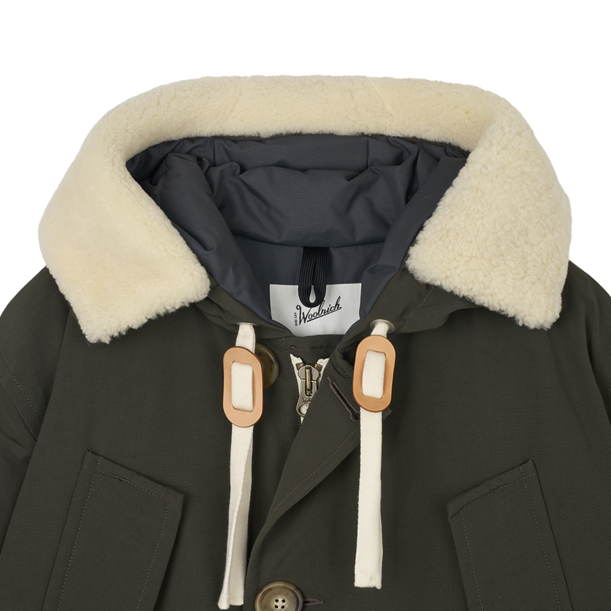 울리치 아틱 클래식 핏 파카 차콜입니다. - 여유있는 오버핏 실루엣 - 볼드한 드로스트링 장식의 퍼후드 - 사선 포켓과 버튼 플랩 포켓 - 실용적인 내부 포켓 디테일