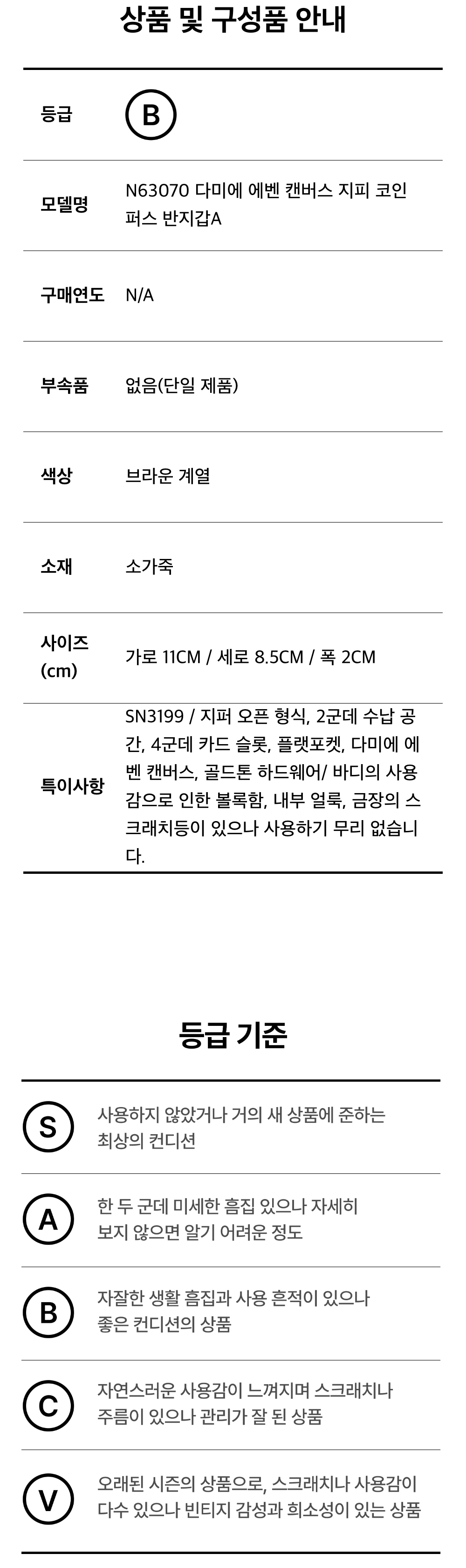 루이비통 N63070 다미에 에벤 캔버스 지피 코인 퍼스 반지갑