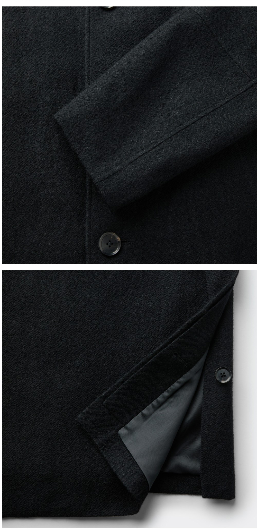 커스텀멜로우 울 린넨 발마칸 코트 블랙