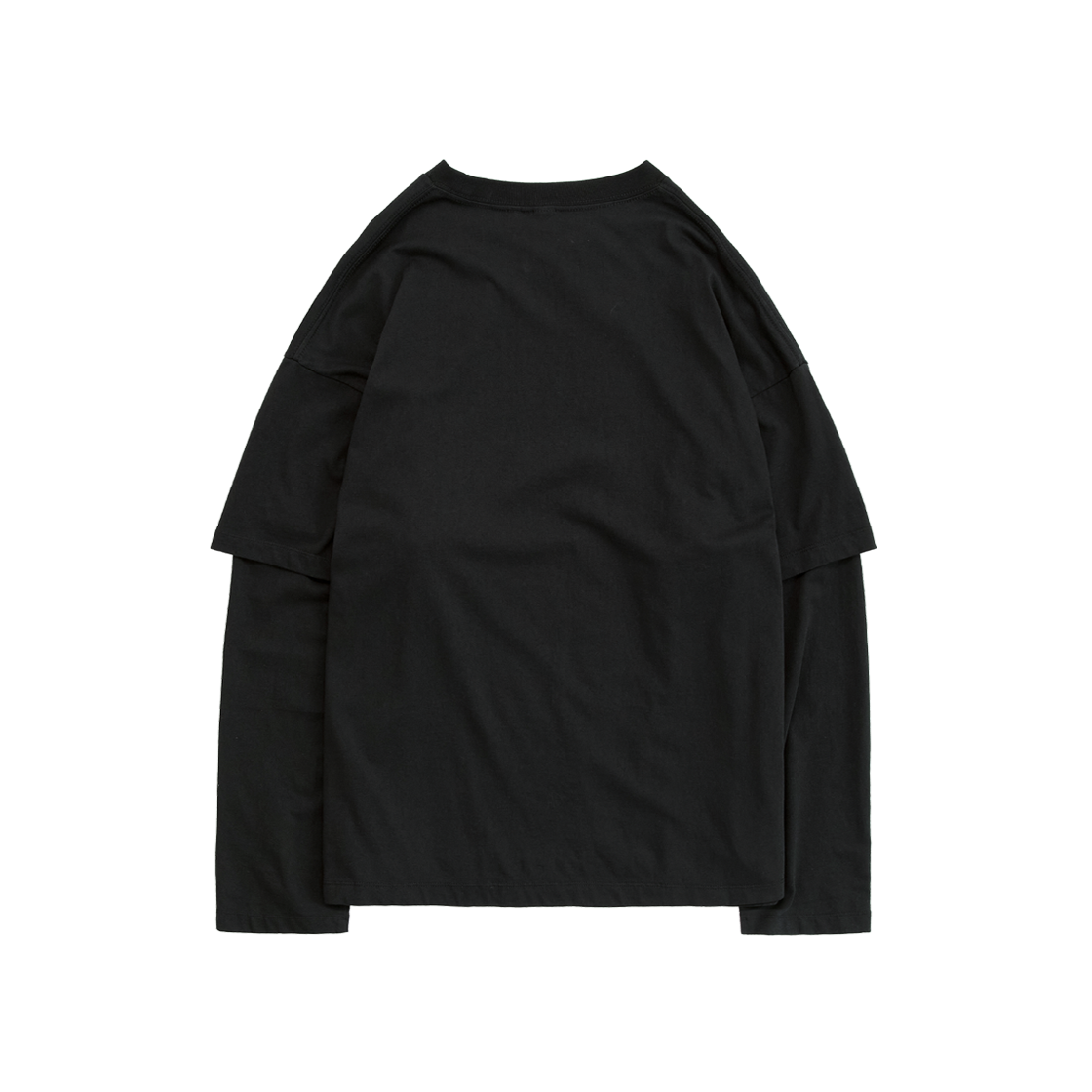 graphic double layer tee - black (guest) - 레이어드된 형태의 소매 - 빈티지한 3 guest 그래픽 & 레터링 프린팅 - 어깨부터 자연스레 떨어지는 실루엣 - 클래식한 블랙에 가까운 색감 - 가먼트 째로 워싱 - 특유의 드레이프 및 부드러운 소재감 - 후면 넥라인 ~ 어깨 체인스티치 마감 *모델1: 175cm / 마른 체형, 3사이즈 착용 *모델2: 178cm / 마른 체형, 3사이즈 착용