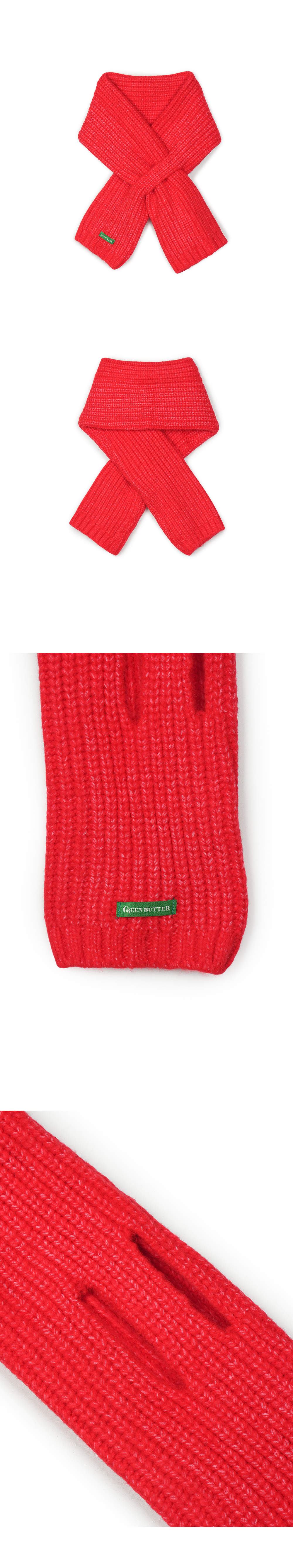 그린버터 플러피 숏 머플러 레드