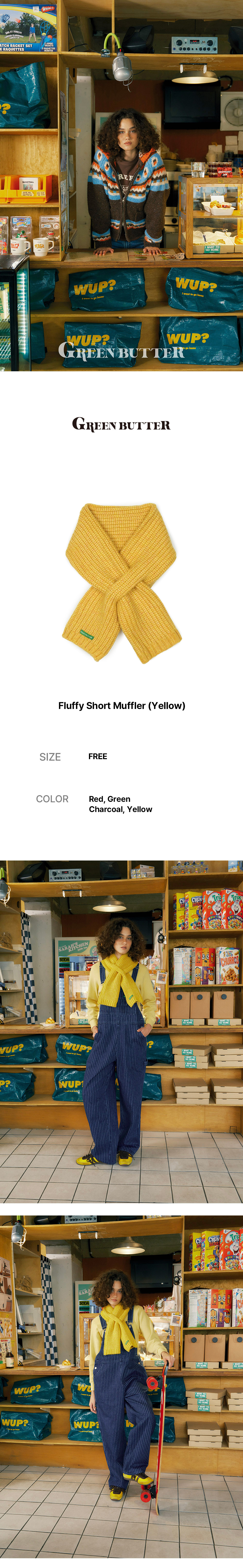 그린버터 플러피 숏 머플러 옐로우