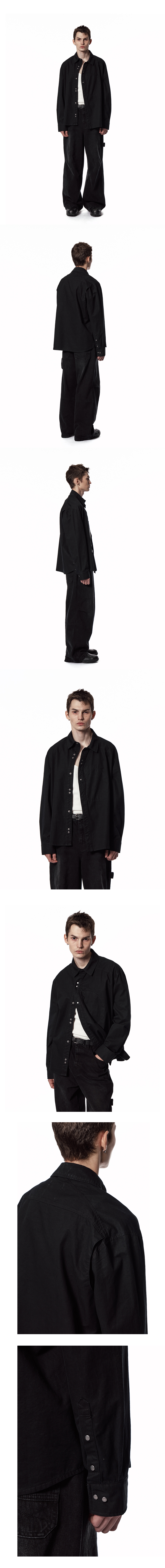 - 세미 오버핏 - 100% 코튼 원단 사용 - 커브드 앞단작 디자인 - 언발란스 어깨 절개 디자인 - 후면 암홀 액션 플라켓 디자인 - 곡선형 앞포켓 포인트 - 포켓 내부 및 후면 액션 플라켓 배색 디테일 - 상단 노출 스냅과 하단 히든 스냅 디테일 - 커프스 스냅 버튼 2개 포인트 MADE IN CHINA
