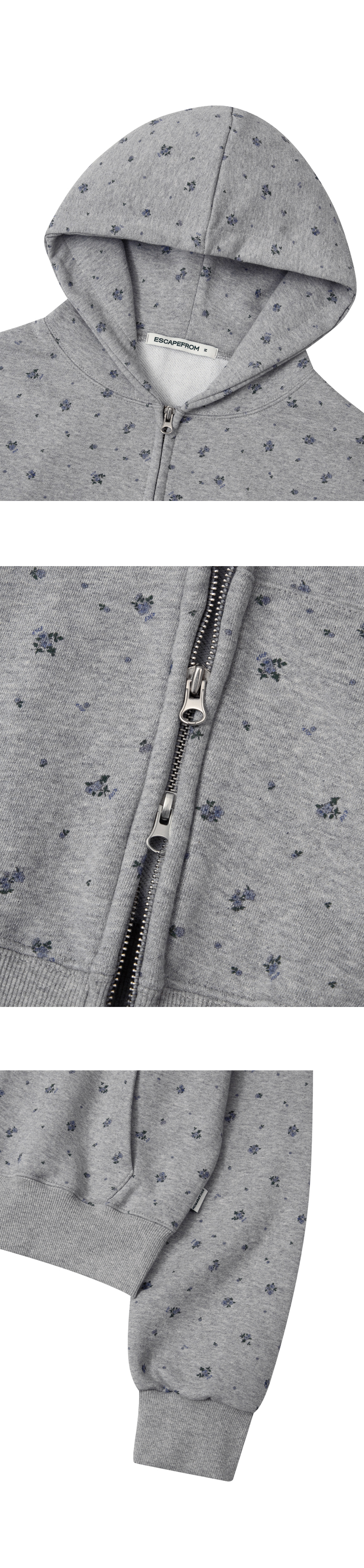 이스케이프프롬 플라워 블룸 크롭 후드집업 멜란지그레이