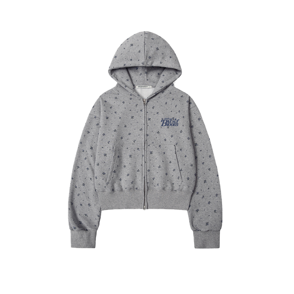 Escapefrom Flower Bloom Crop Hoodie Zip-Up Melange Gray