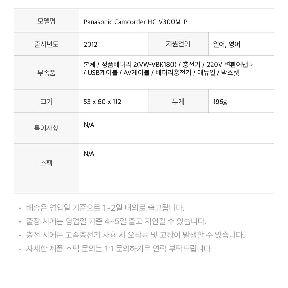 파나소닉 캠코더 HC-V300M-P 핑크
