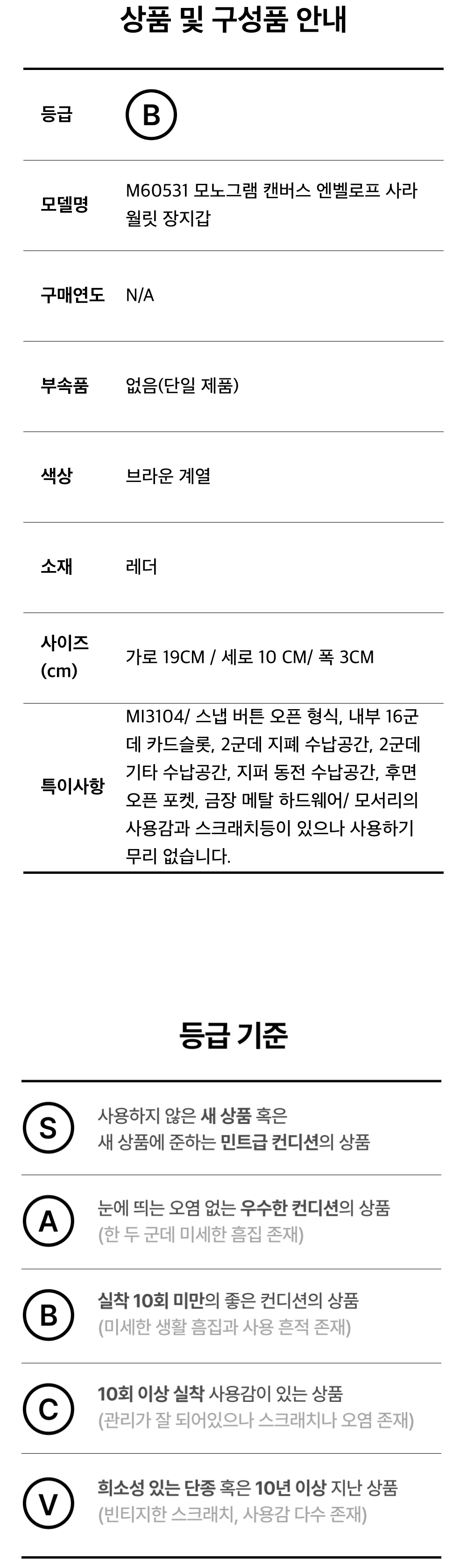루이비통 M60531 모노그램 캔버스 엔벨로프 사라 월릿 장지갑