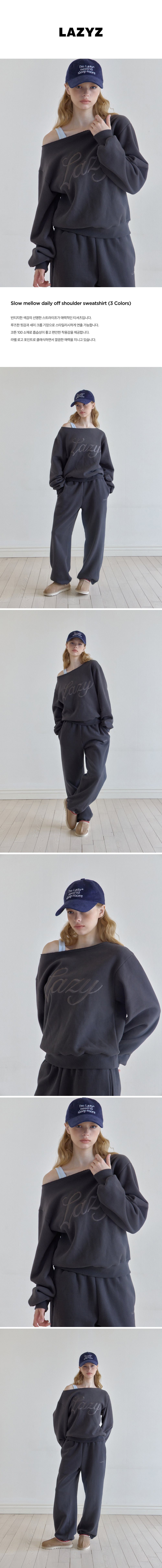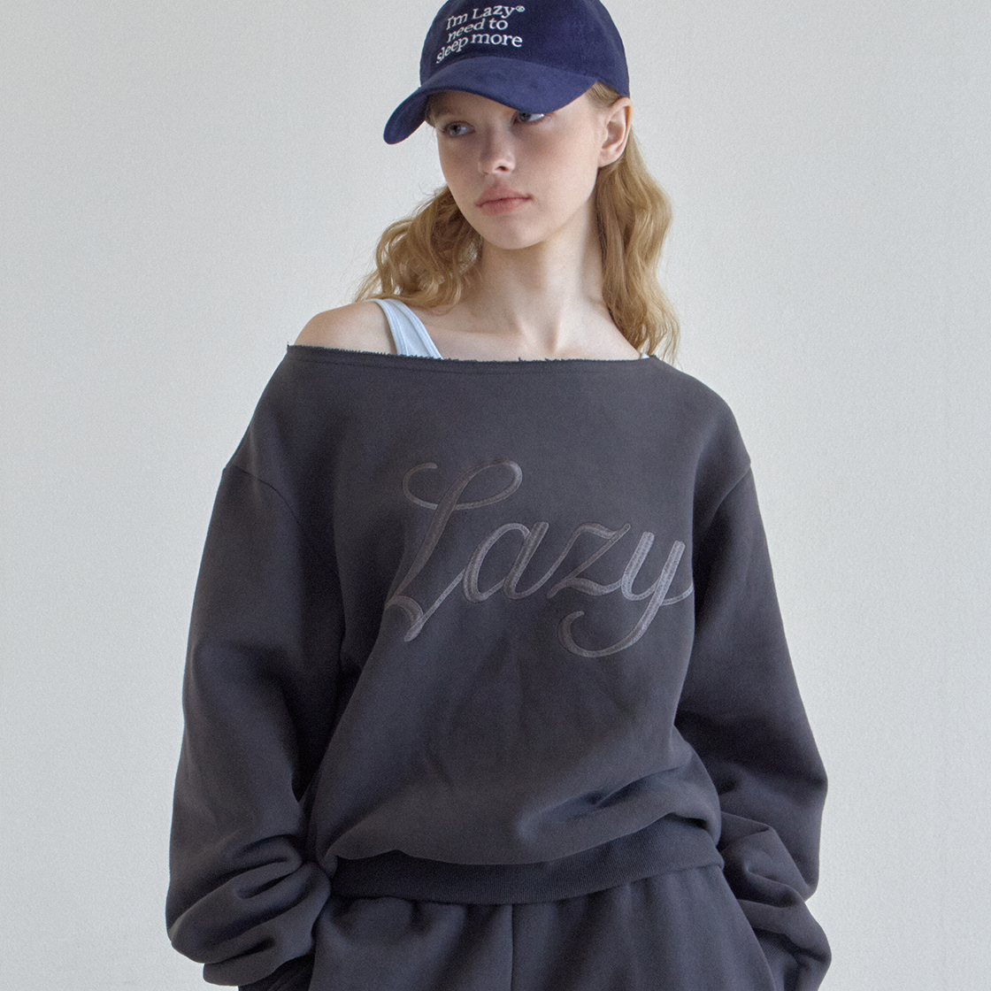 레이지지 슬로우 멜로우 데일리 오프숄더 스웻셔츠 차콜