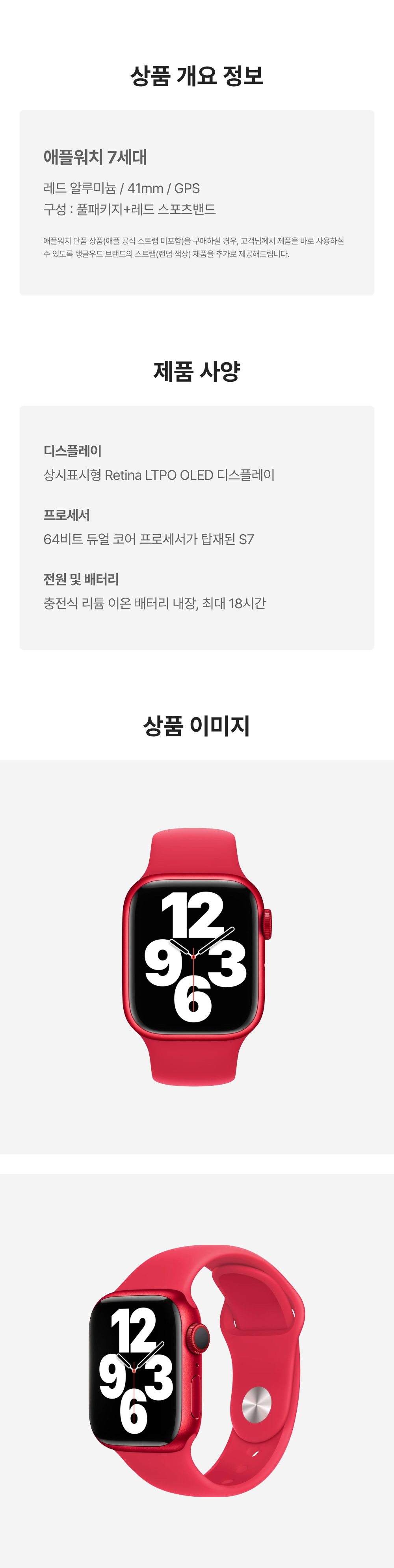 [A등급] 리퍼비시 애플워치 7 41mm GPS 레드 알루미늄 케이스 스포츠 밴드 레드