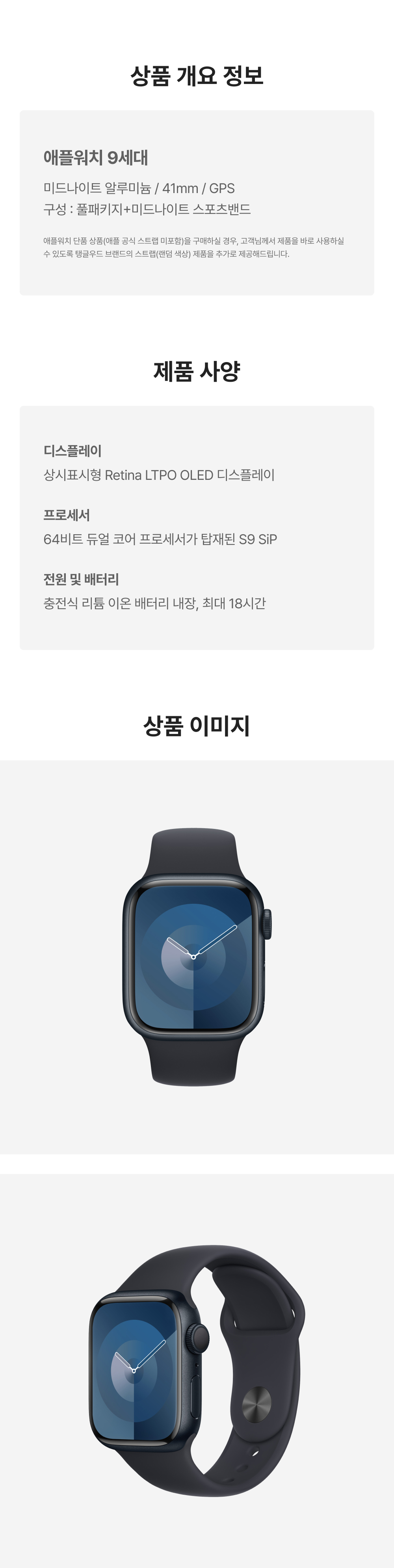 [S등급] 리퍼비시 애플워치 9 41mm GPS 미드나이트 알루미늄 케이스 스포츠 밴드 미드나이트