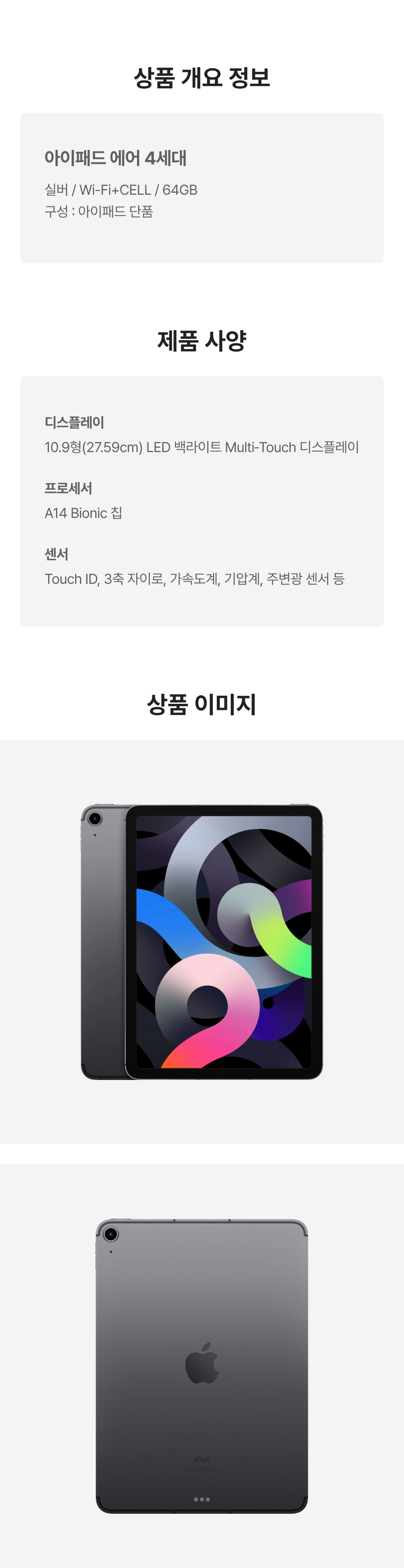 [B등급] 리퍼비시 아이패드 에어 4세대 wifi+cellular A14 Bionic 64기가 실버