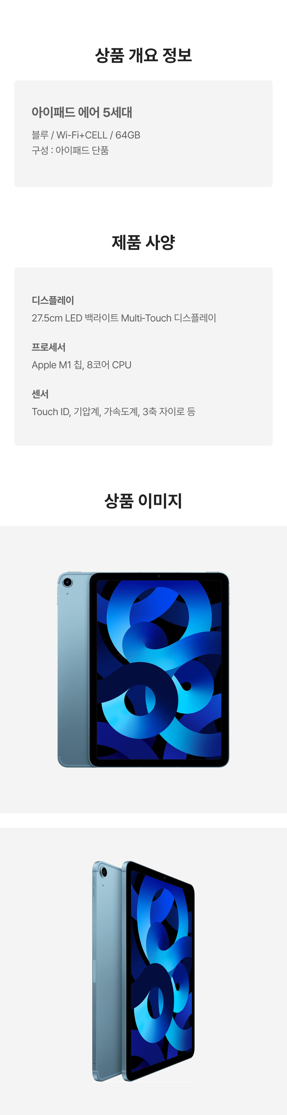 [S등급] 리퍼비시 아이패드 에어 5세대 wifi+cellular Apple M1 64기가 블루