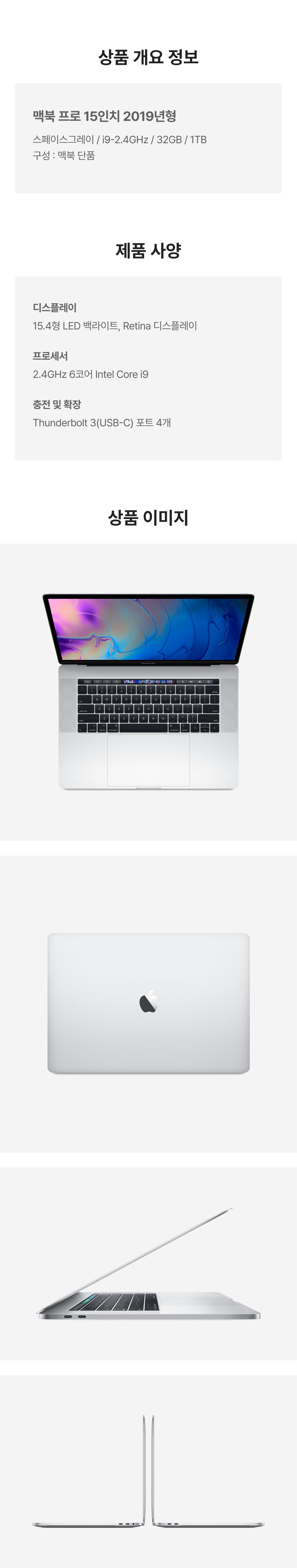[B등급] 리퍼비시 2019 맥북 프로 15 i9-2.3GHz 512기가 SSD 16기가 램 실버