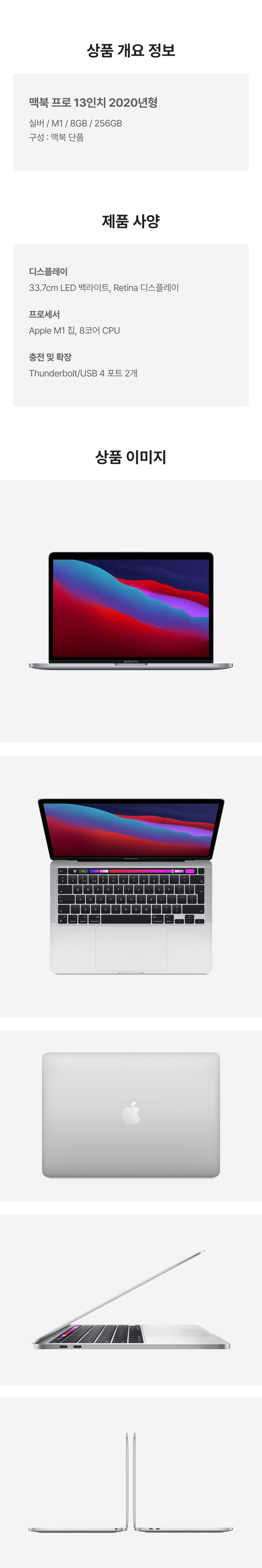 [S등급] 리퍼비시 2020 맥북 프로 13 M1 256기가 SSD 8기가 램 실버