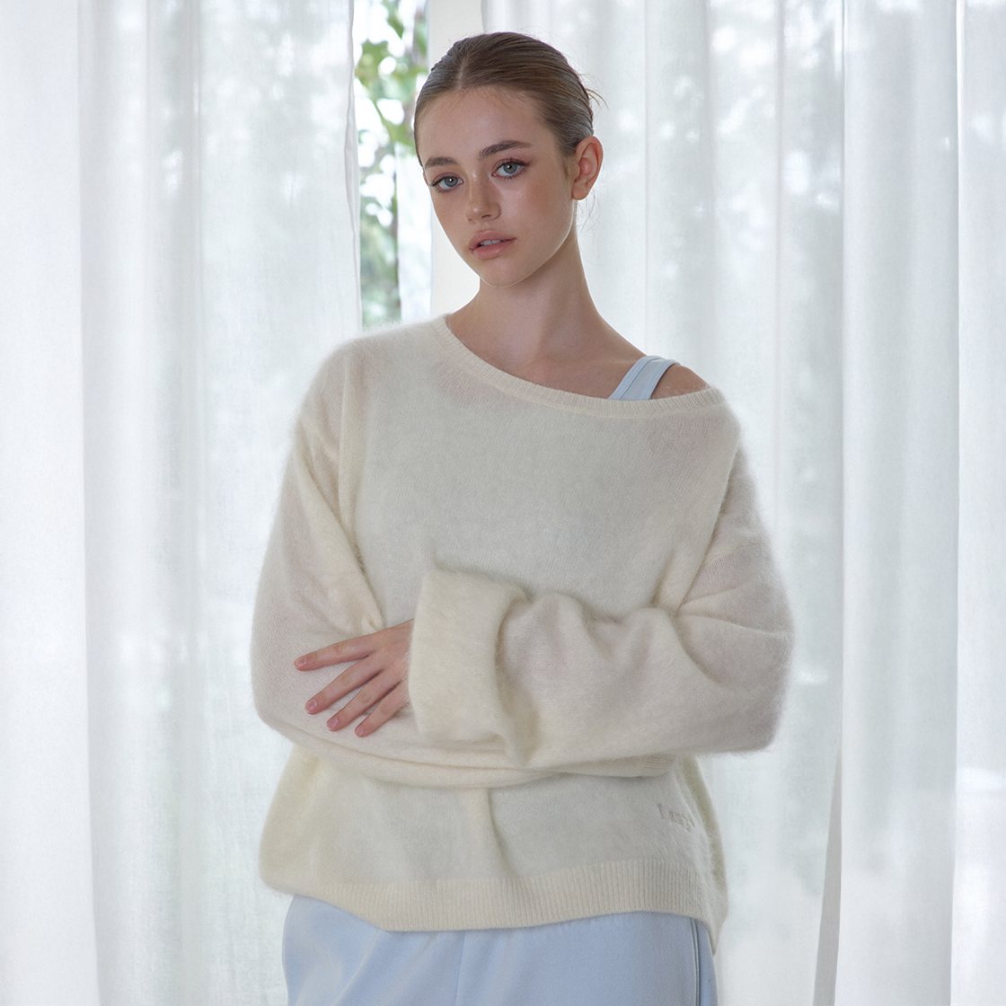 레이지지 클라우드 오프숄더 울 니트 아이보리