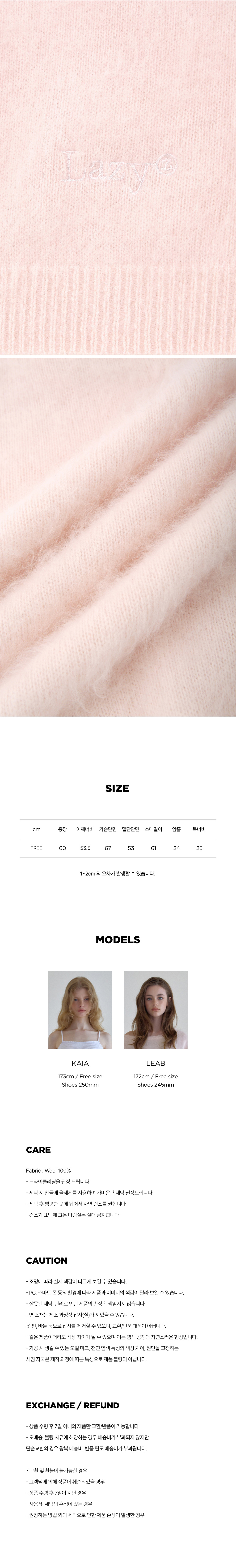 레이지지 클라우드 오프숄더 울 니트 핑크