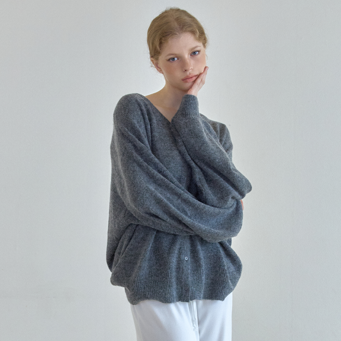 레이지지 이지 소프트 루즈핏 니트 가디건 헤더그레이