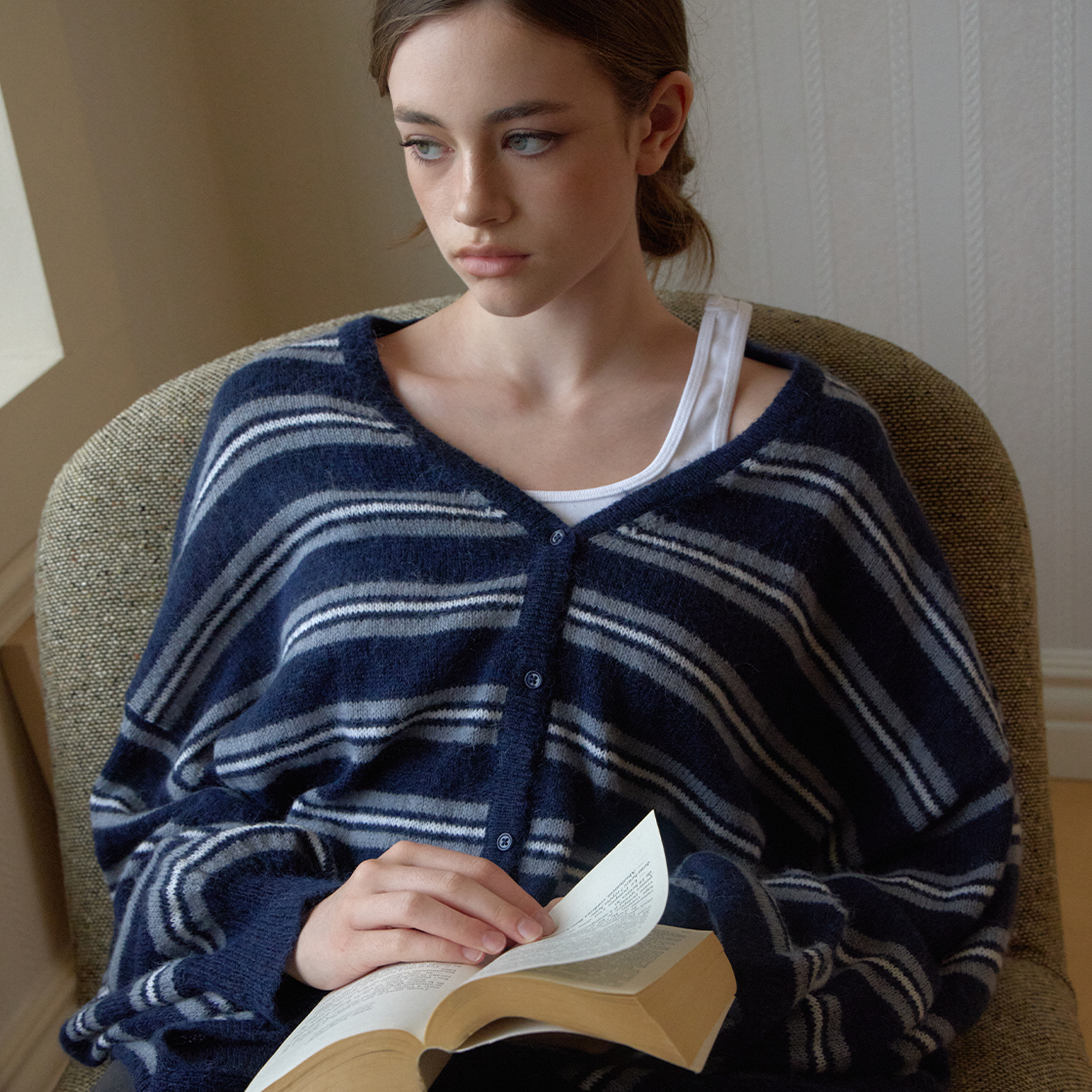 레이지지 이지 소프트 루즈핏 니트 가디건 네이비/그레이