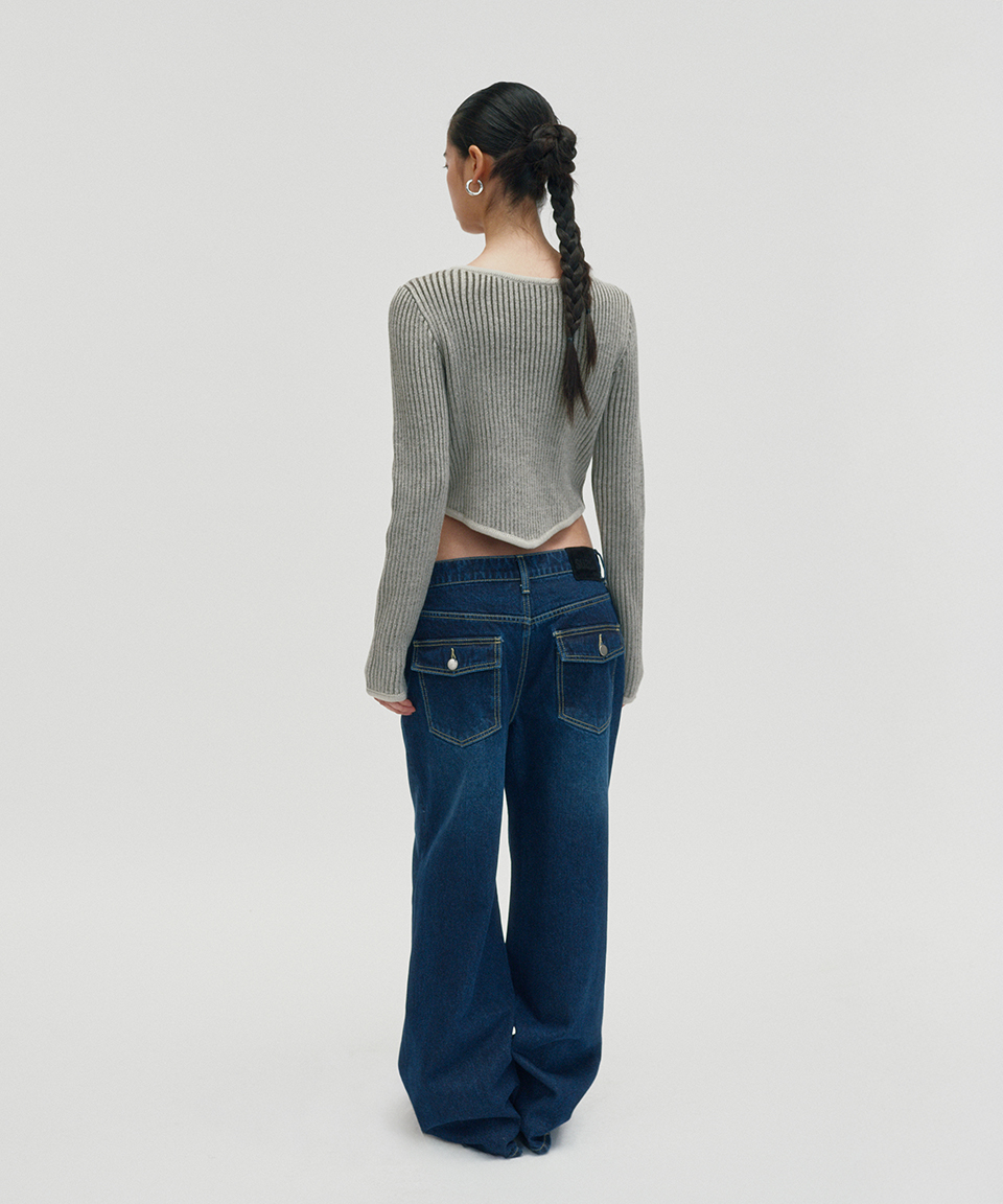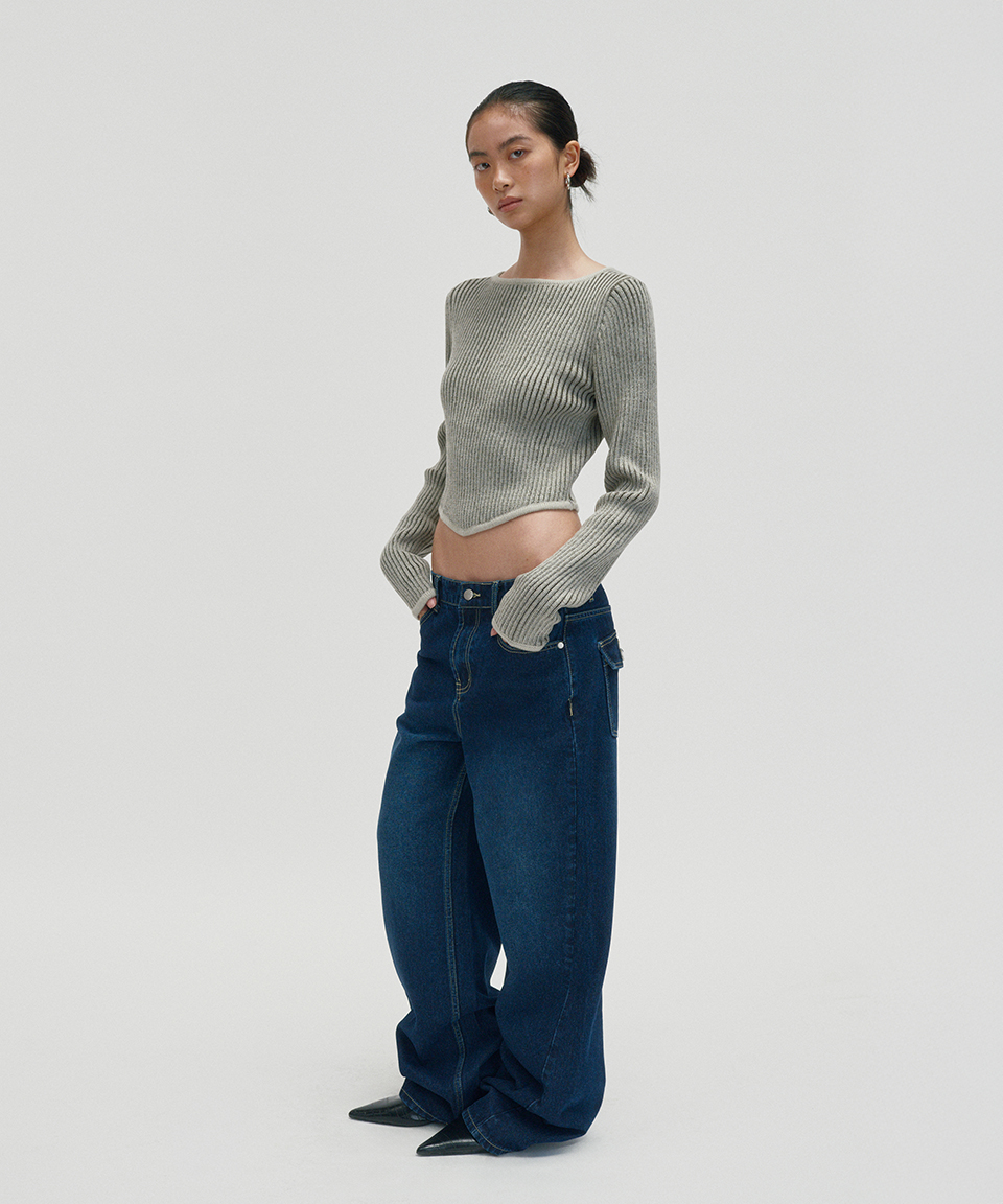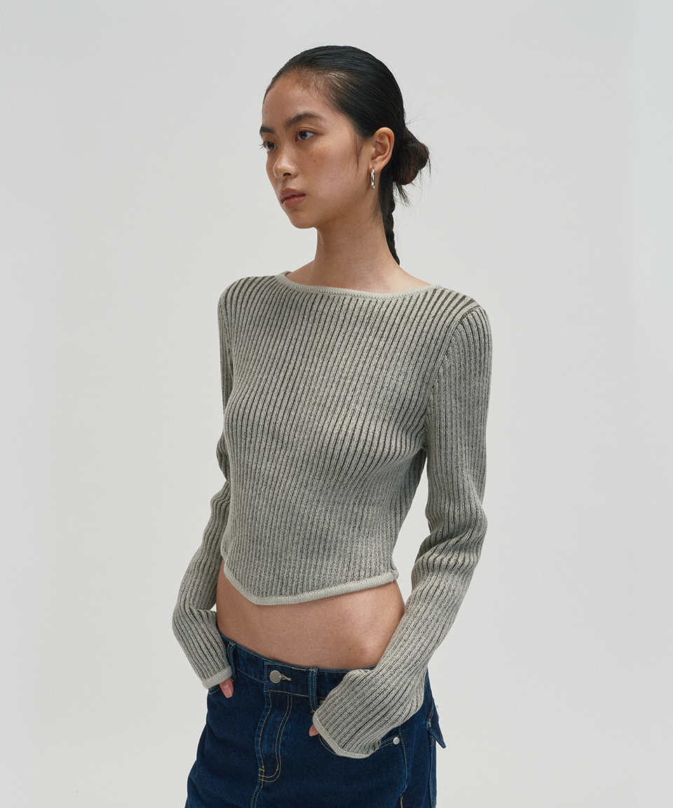 스웨이드 워시드 립 니트 카키