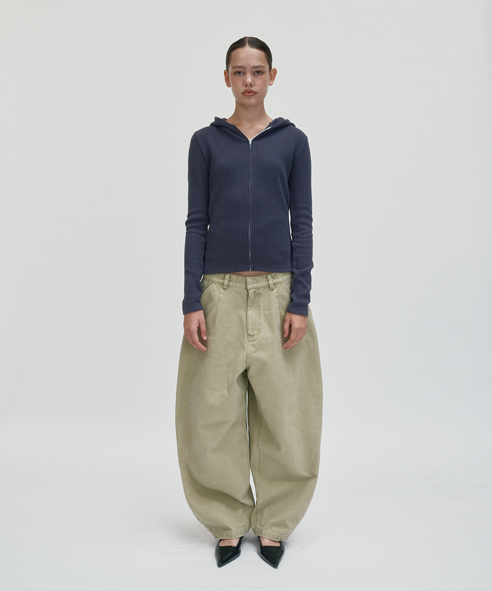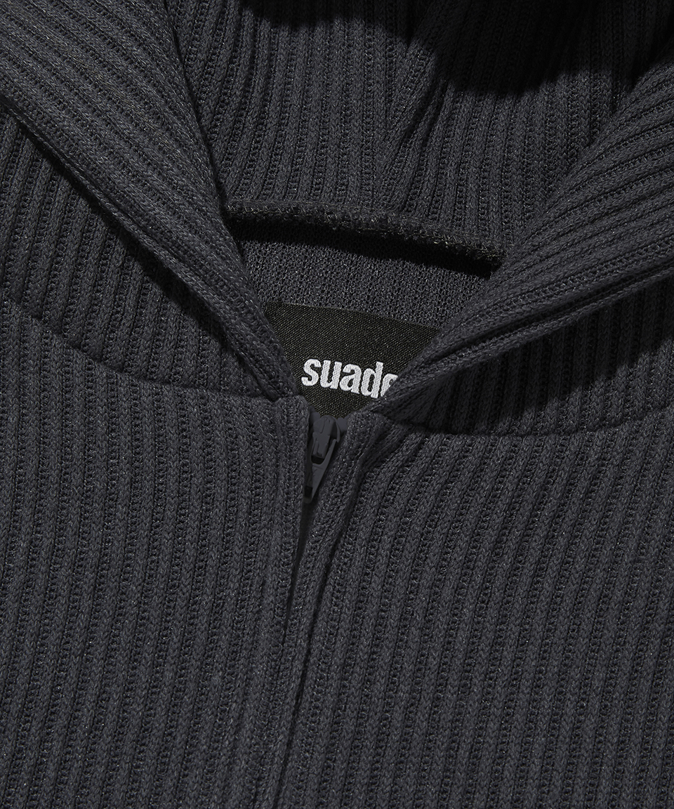 Suade Hooded Rib Zip Up Charcoal Gray